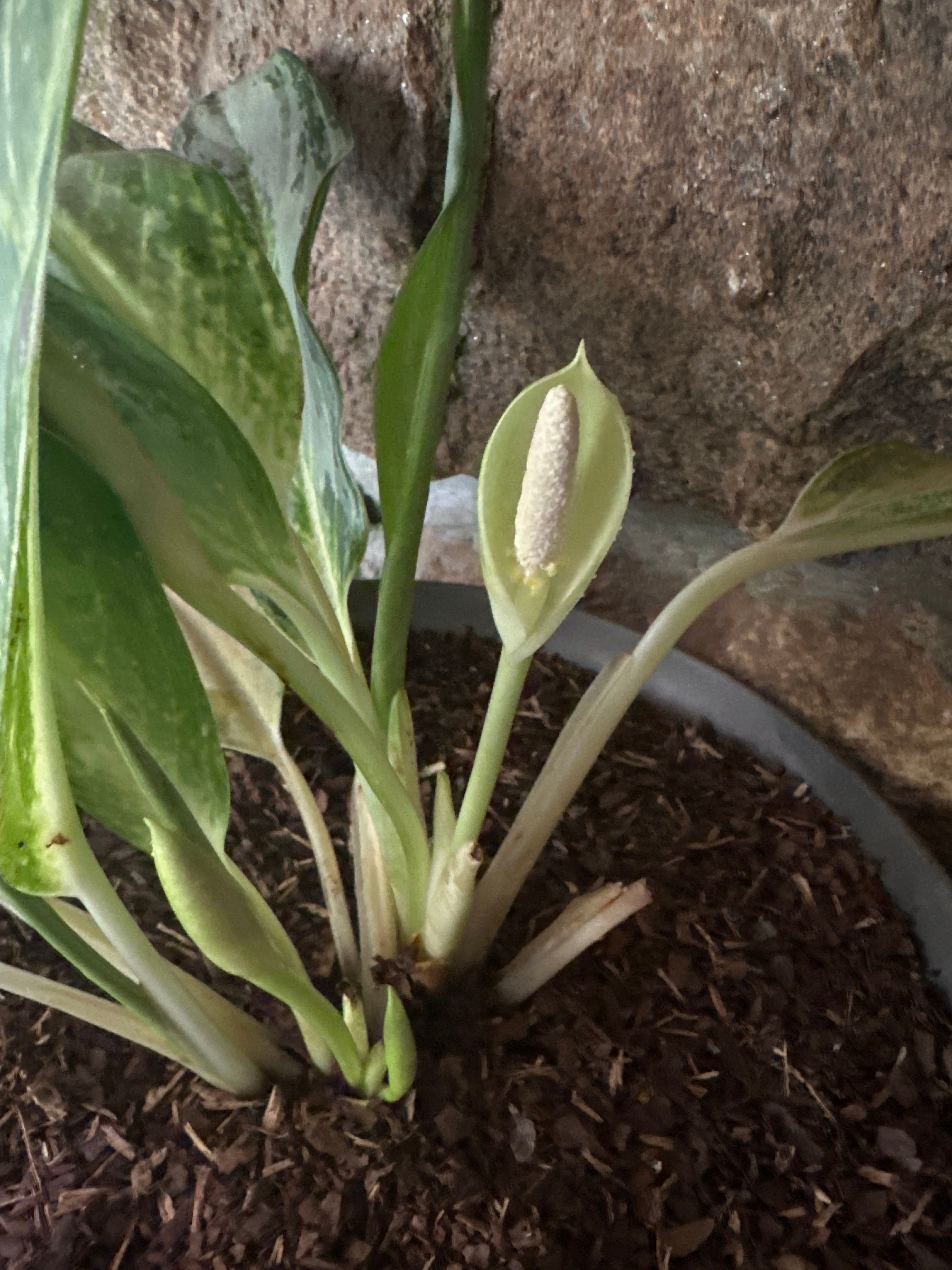 What is happening? #Aglaonema I trimmed off the dead leaves slowly since I got it and I thought this was going to be a new leaf but itās not. I have no idea what this is or if it happy or I need to do something