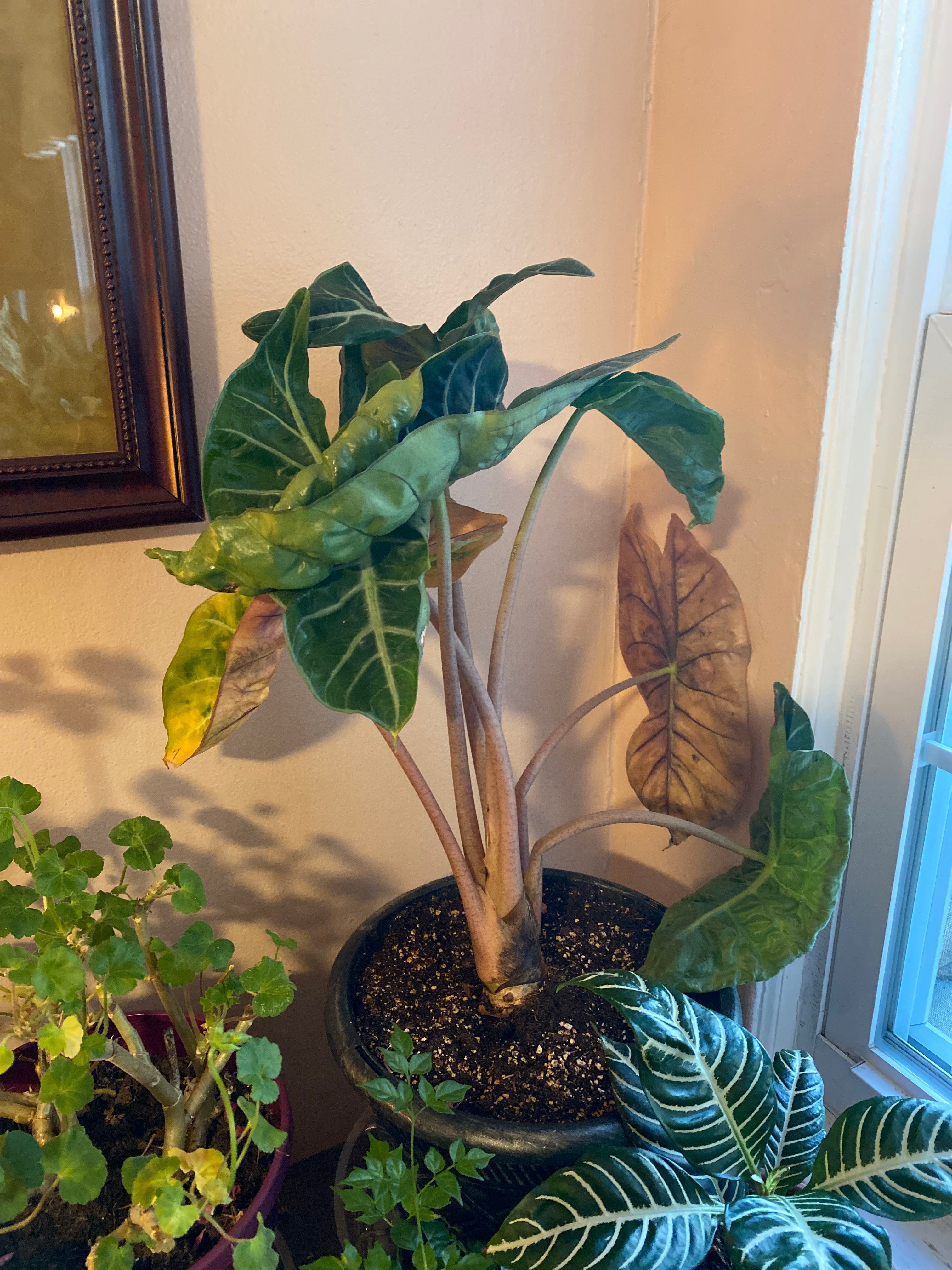 What’s happening to my alocasia? Please help!! My Alocasia was a little off when I bought her but she’s been doing well for a few months. All of the sudden, over the past week or two, her leaves have been dying!! She just looks really sad and some of her leaves look ok but the others are dropping fast :( I was worried I was maybe overwatering so I’ve been delaying her next watering but I’m not sure how to get her better 😭 #Alocasia #help #yellowingleaves