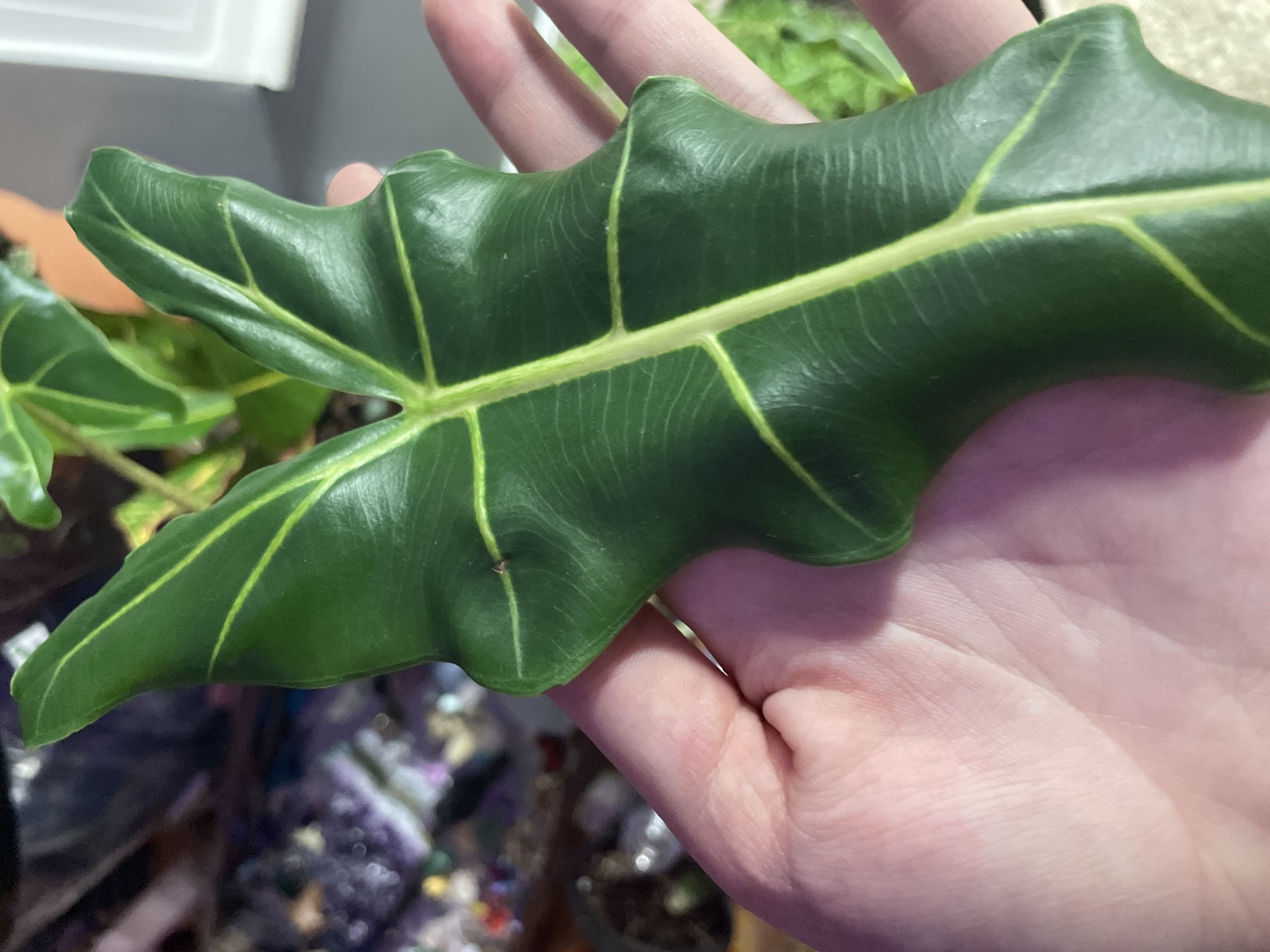 Love this plant, I bought it and another type of alocasia from a plant nursery when they where both very sick, after a few months and this plant almost dying it came back stronger then ever and is now putting out its 4th leaf in just 3-5 months