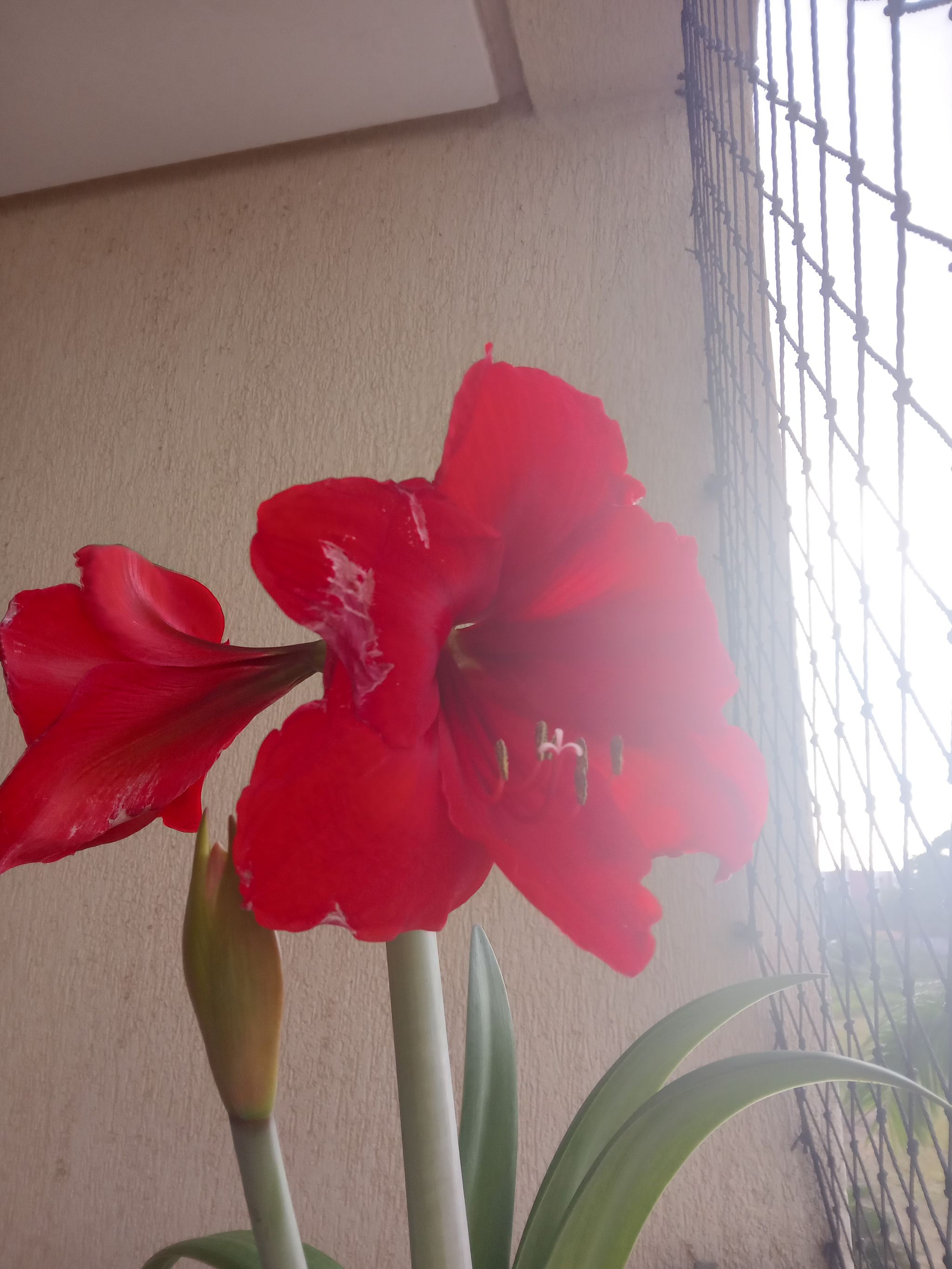 White marks I have a red amaryllis, and it started blooming. But I can see some white spots in the flowers. What could it be #hippeastrum