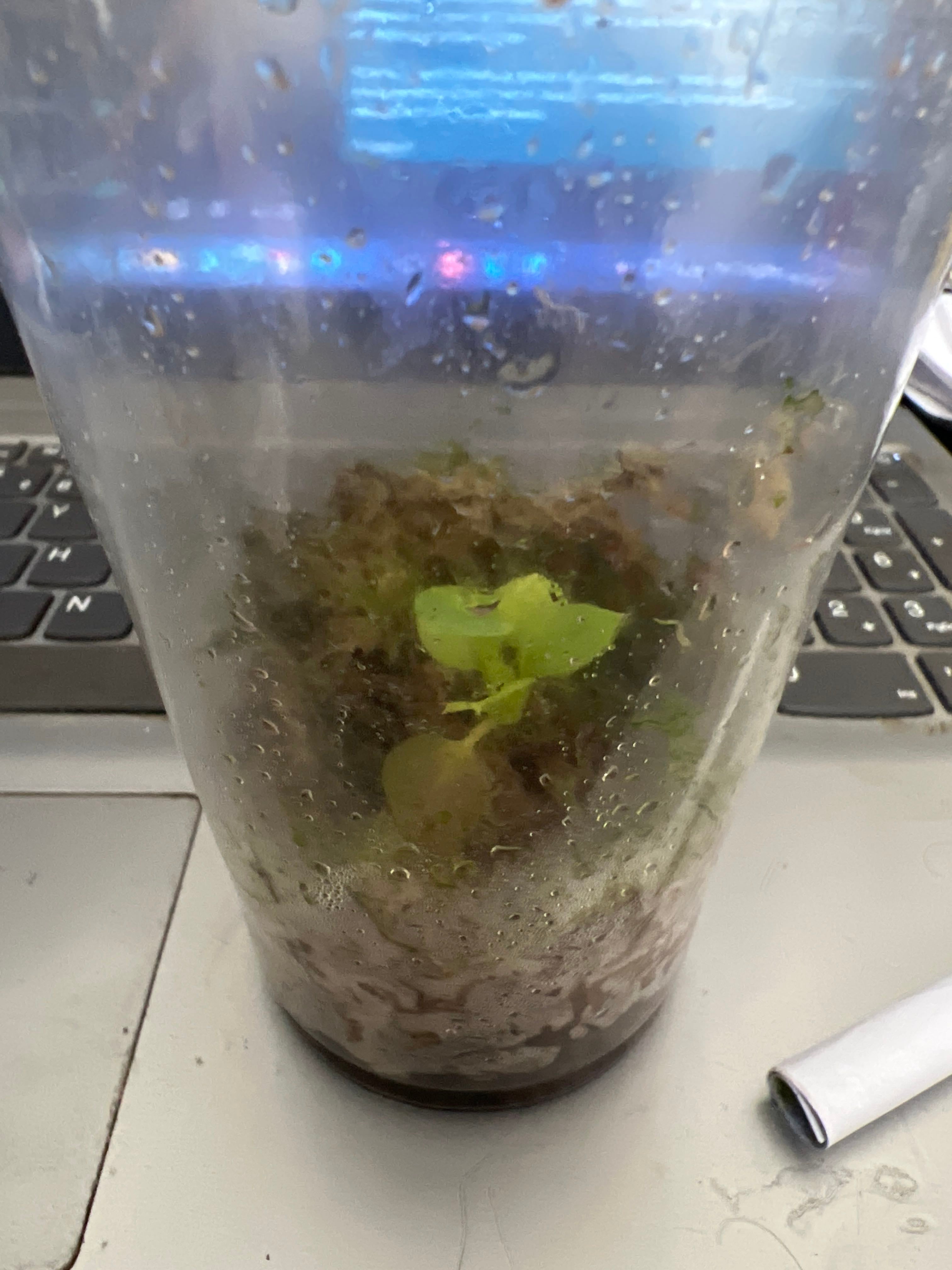 How do I know if it’s working? #Anthurium How do I know if it's working? A friend gave me a baby (emphasis on baby) Anthurium vittarifolium as a gift (pics attached). It's in sphagnum, on a grow light for at least 8 hours a day and in a sealed plastic cup. I provide nutrients weekly through a foliar fertilizer. However, I haven't noticed any growth. It hasn't decayed, which is good, but... is it the species? Am I doing something wrong? I know it's too soon to put it in soil so I'm comfortable keeping it in sphagnum, but I wish I'd see results. Thoughts? #HappyPlants #PlantsMakePeopleHappy #PlantAddict #NewGrowth #PropagationStation
