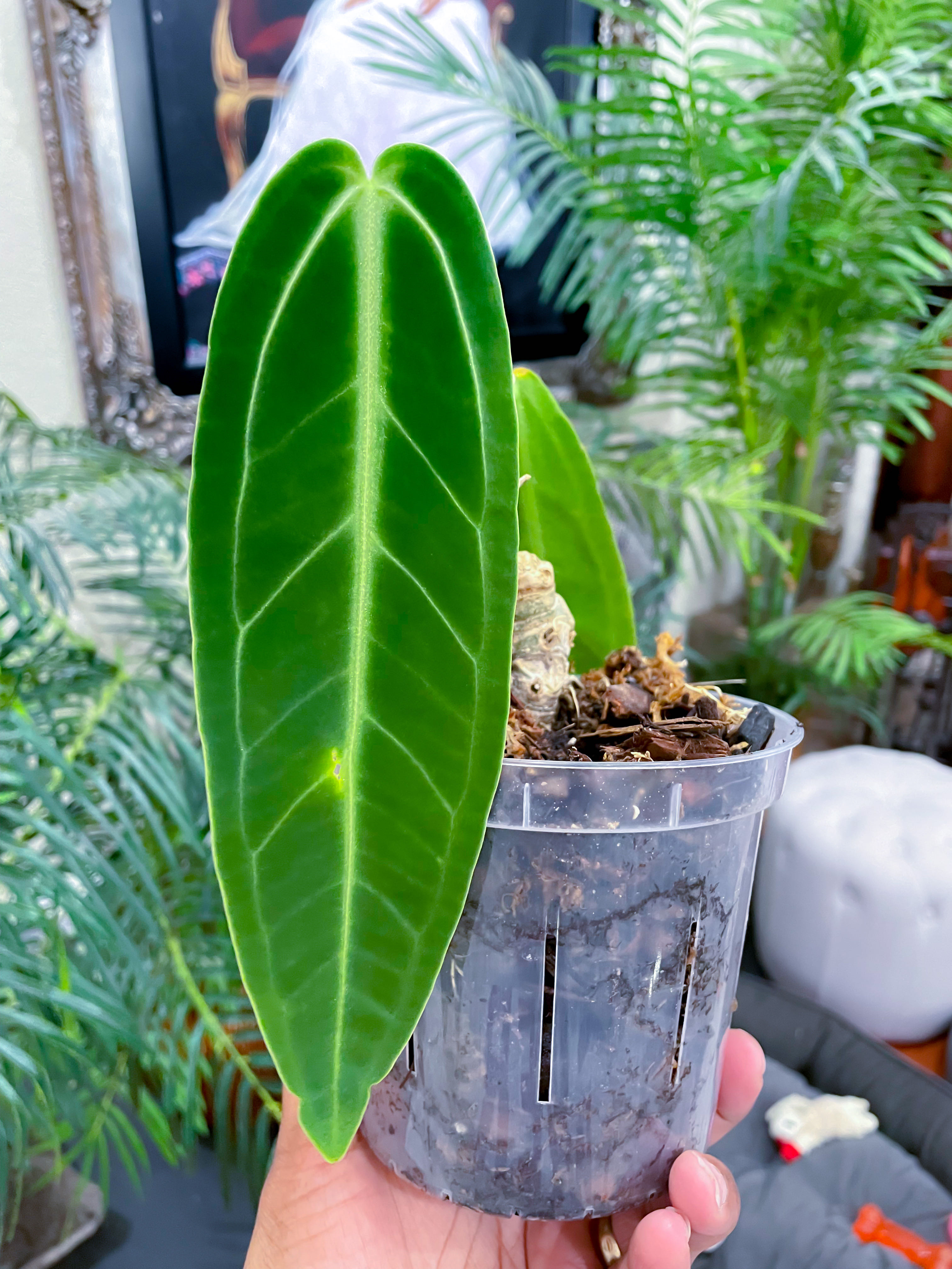 Hi #GregGang! Today in #CarolinesWinterGarden , we are saying goodbye to Adeya our very first #QueenAnthurium! Her backstory: I purchased her from someone, not a nursery, and she made me fall in love with all Anthuriums. š In her time with me, she went through moments of beautiful growth and torturous leaf loss, multiple times. I quickly understood that she was sickly. No matter what I tried, she would lose foliage and was unable to hold on to any very long. Iām not sure how old she was but she seemed to be an apartment sized plant (the Esmeralda) and not the larger queen. It didnāt matter. She was still loved and will always be loved for teaching us about Anthurium care. We learned a lot! š Well, sheās been slowly dying back and while Iāve waited for her to decide whether she wants to go or stay, Iāve kept a watchful eye; today, itās apparent sheās too tired and has decided to go. š We arenāt upset since sheās given us so much knowledge and shared her beauty with many as well as inspired many to consider welcoming Anthurium into their home. Weāve enjoyed her presence and the fuss she brought to our lives. Itās been good and we hope to find another Queen that will sit in her place and live a long life amongst the original Adeyaās mini kingdom. Cheers to Adeya 1, our first queen! š„You will be missed! šæ #Fitsedum #PlantAddict #SanAntonioGregGang #TexasGregGang #CentralTexasGang #AnthuriumQueen