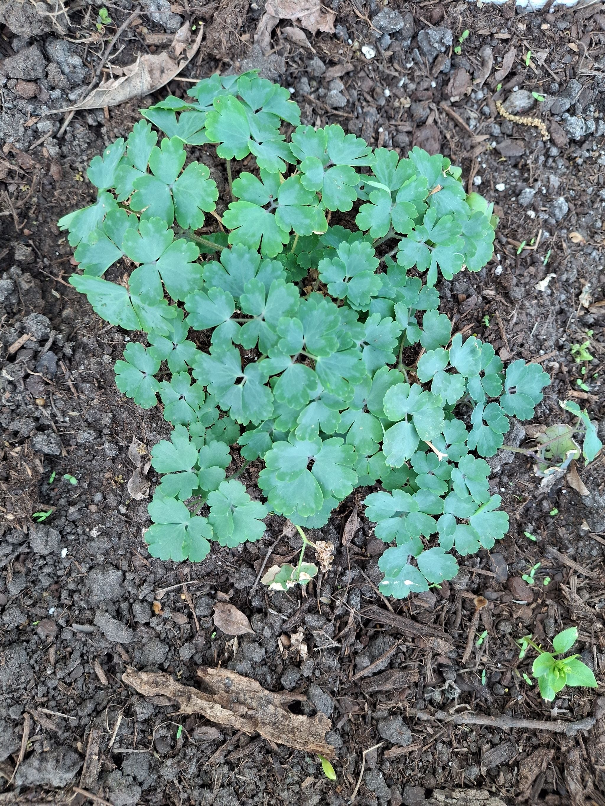 I can’t figure out why it has only sprouted on one side of my pot. I’ve tried rotating it in my window but nothing is making a difference. Any suggestions? #CommonColumbine