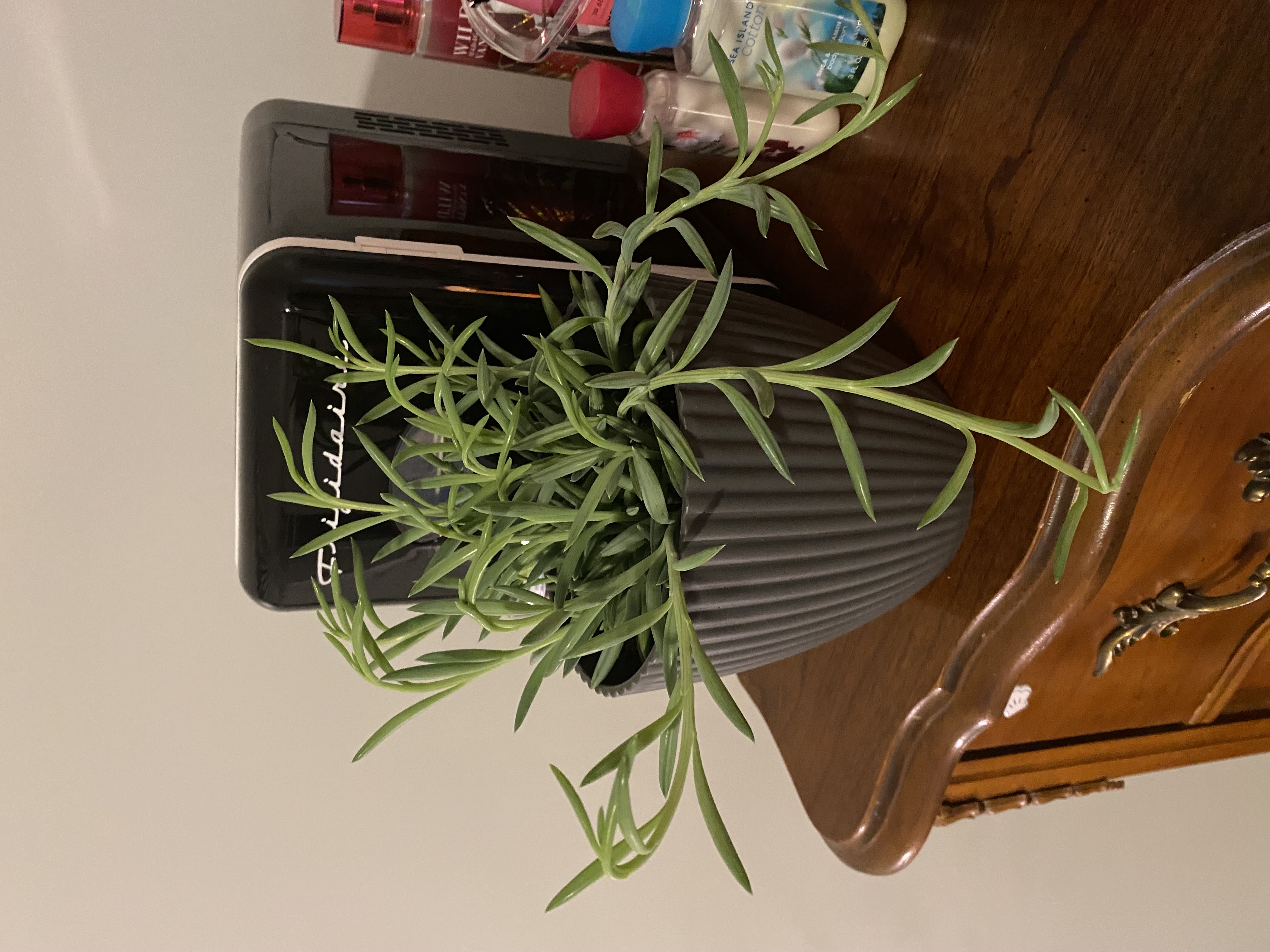 Update!! My chalksticks that I was concerned about leaning, they are doing wonderful. After some research they do in fact do that and one comment from @Jilliebeanstalk told me they reached for the ground in nature, in the last few days he has been growing like CRAZY, you can see on his plant card heās made a lot of growth and even new roots I saw going into the soil!! And on the second picture what is this? My first thought was an aerial root but I was hoping to get some more opinions! #HappyPlants #NewGrowth #PlantAddict #NewPlantMom