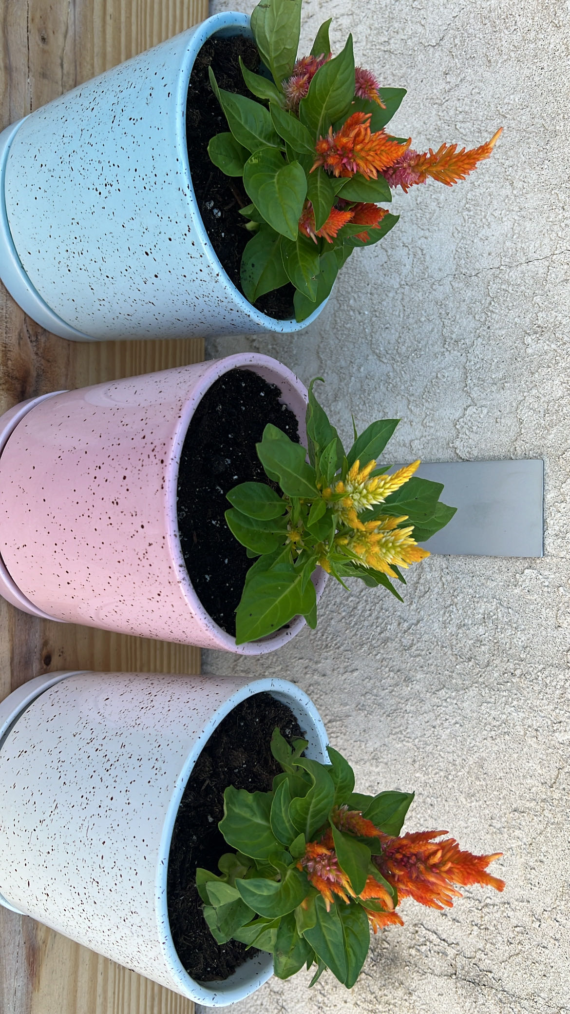 Yesterday, at my boyfriend’s great grandmothers 90th birthday party, these lovely party favors were handed out! I’ve never seen this before, so I was really excited to grab three cockscombs. They definitely needed some repotting, so I took care of that last night, and some fresh water for each of them. My boyfriend recently welded me my own plant shelf for the backyard, so that’s where they’ll reside. This spot gets a great amount of sunlight which is what these babies need. #Cockscomb #NewPlants
