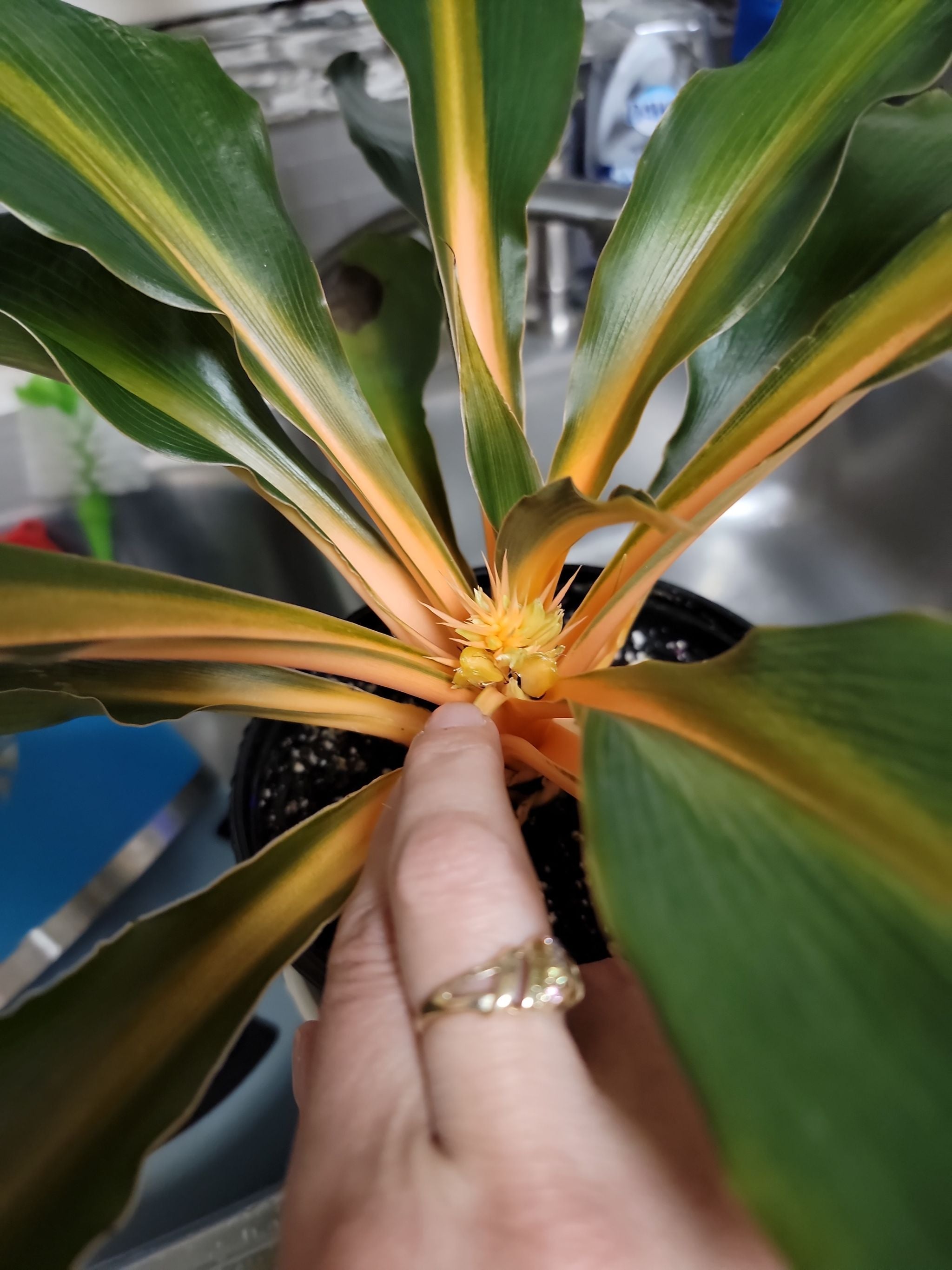 Is this a flower? Or a baby? Not sure what it is but it's Pretty 😍 thanks in advance for the insight... #plantsmakepeoplehappy #happyplants #newgrowth