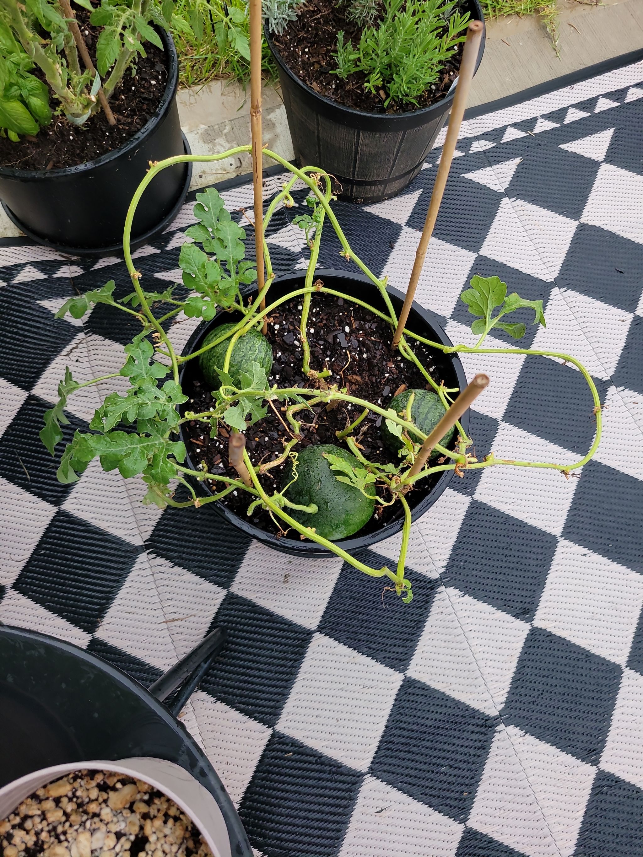 Trimmed back due to aphids but the melons seem to be okay #Watermelon