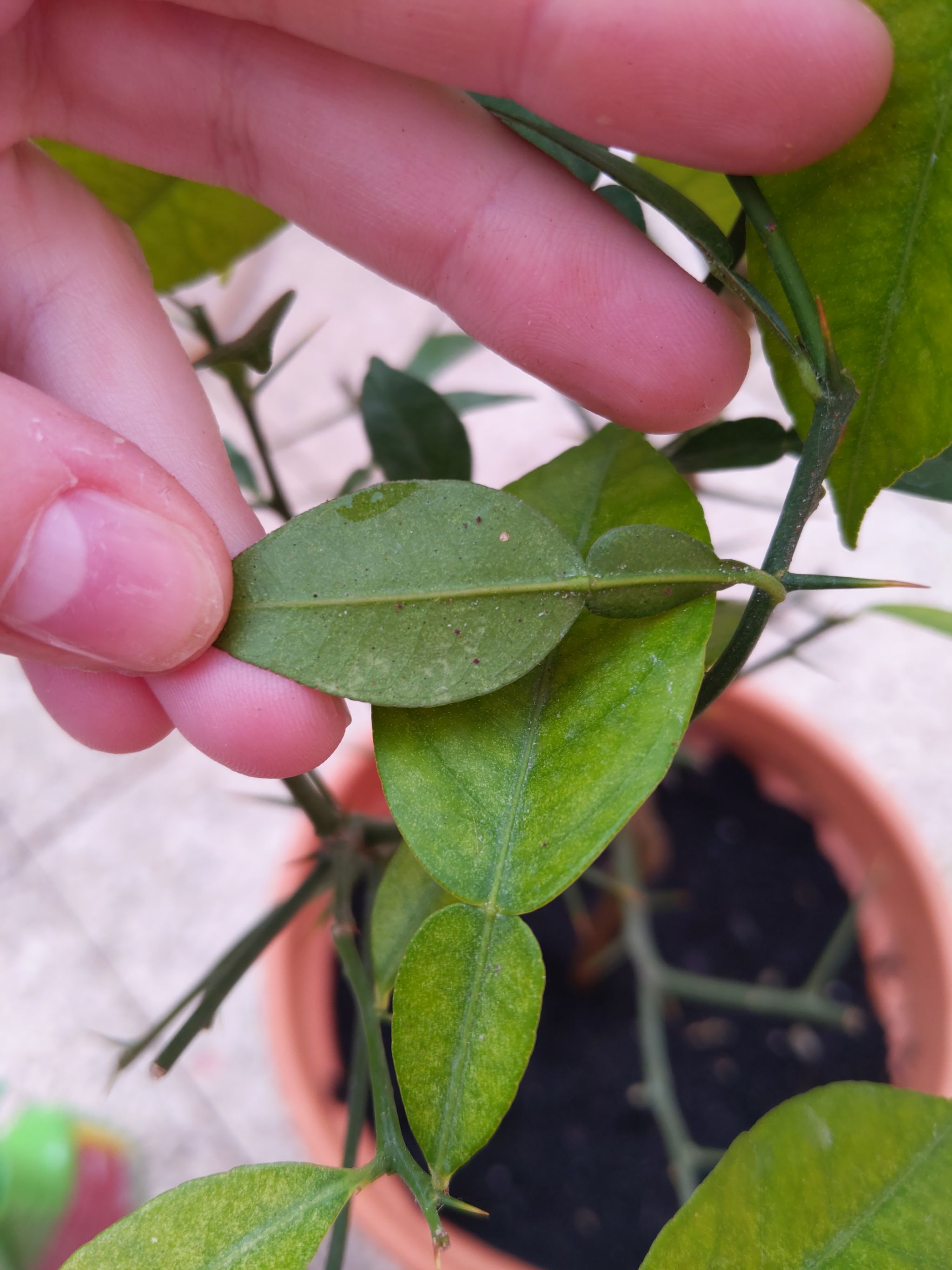 Slightly yellow leaves and weird dots I just got my yuzu lemon and its a bit yellow, with some weird dots that are either dirt or bugs. I've repotted it with new soil, since the original one was almost clay-like, with citrus soil mix. I also cleaned the leaves with soapy water so no little dot is visible. Is this enough for the yellowing to fade? #yuzutree #pestcontrol #plantsmakepeoplehappy #sudachiyuzu