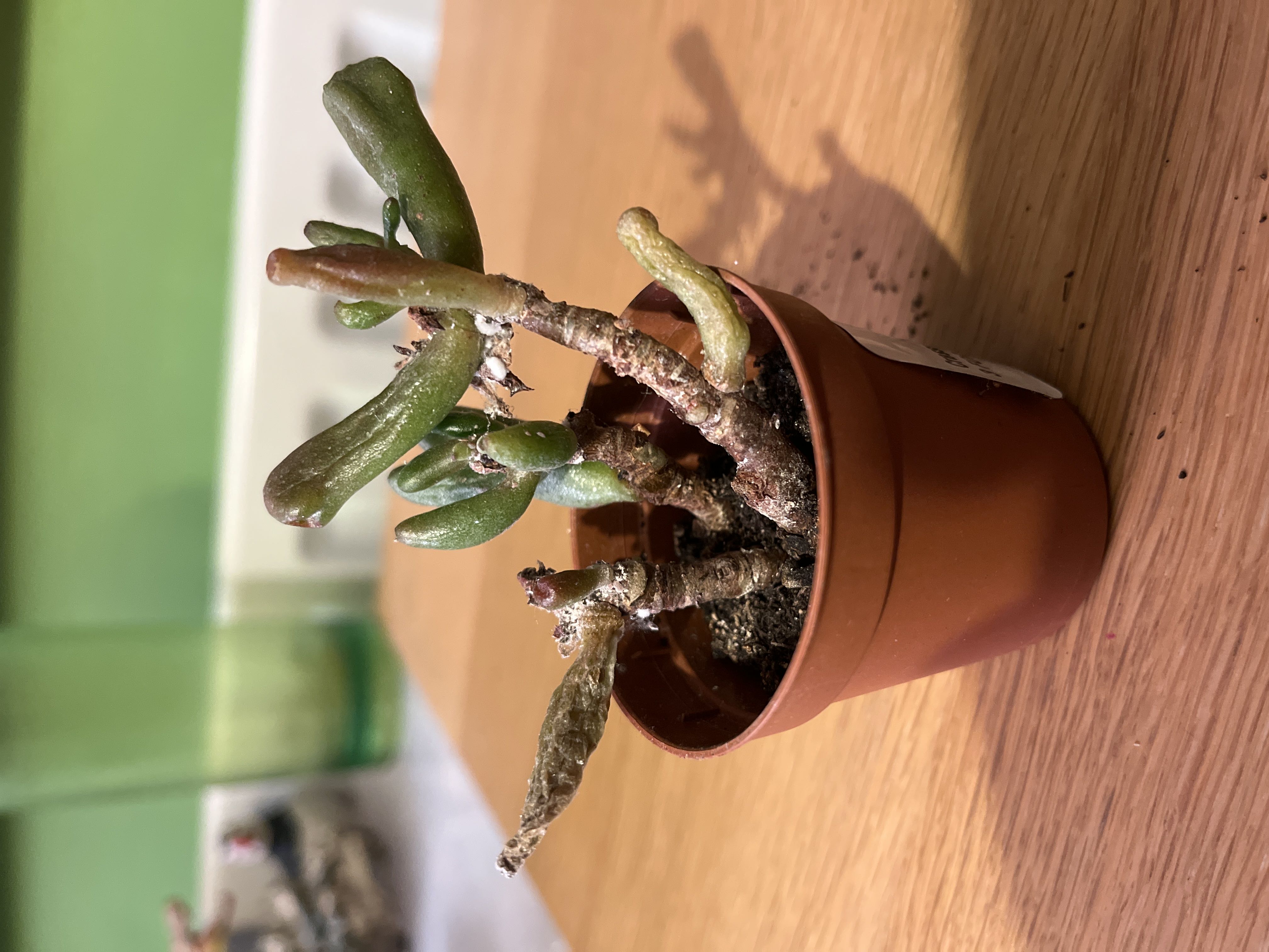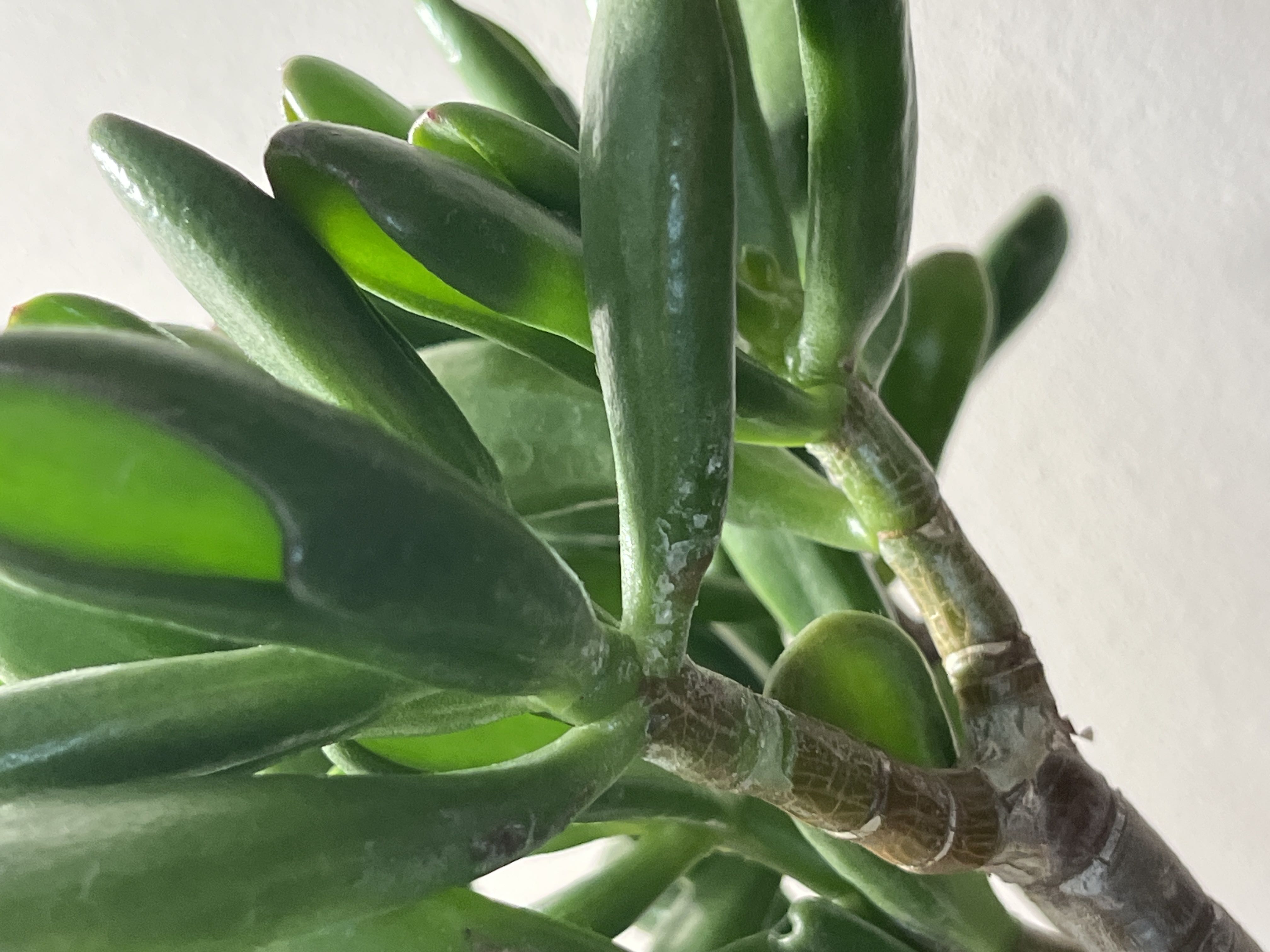I’ve had this guy for about a month and seeing some odd textures appear on some leaves. Should I be worried? #Crassula #hobbitjade #crassulaovata