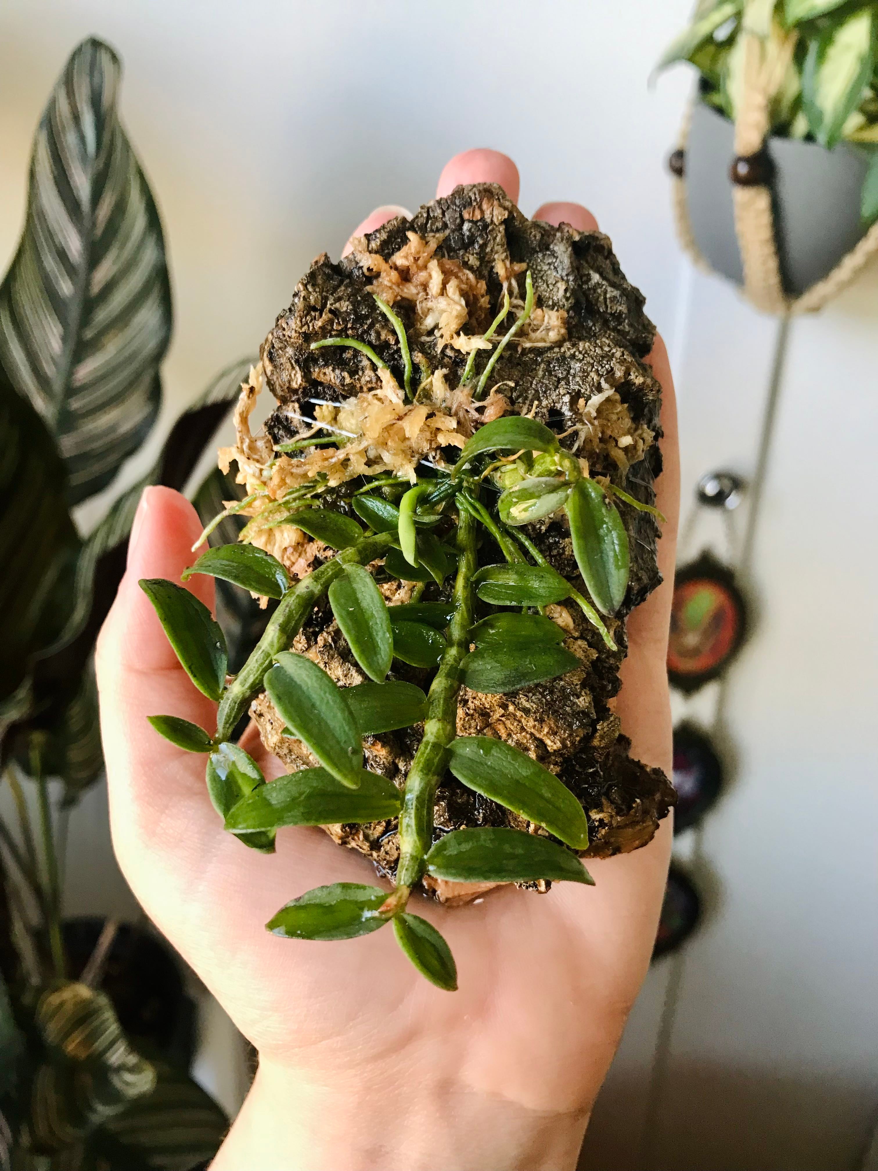 Moved my dendrobium loddigesii over to a cork mount today (was on a cedar shingle prior and drying a bit too rapidly for my like.) This is a small dendrobium species with very cute pink & yellow blooms. 🌸 See the 2nd photo for a drawing I’m working on, for what it looks like. 🙂 We won’t get any blooms this year, but maybe next year! Focusing on new cane growth until then. Already have a new one coming. #OrchidLovers #NewGrowth #Dendrobium #OrchidOrg #HappyPlants #GregGang #PlantArt #PlantsMakePeopleHappy