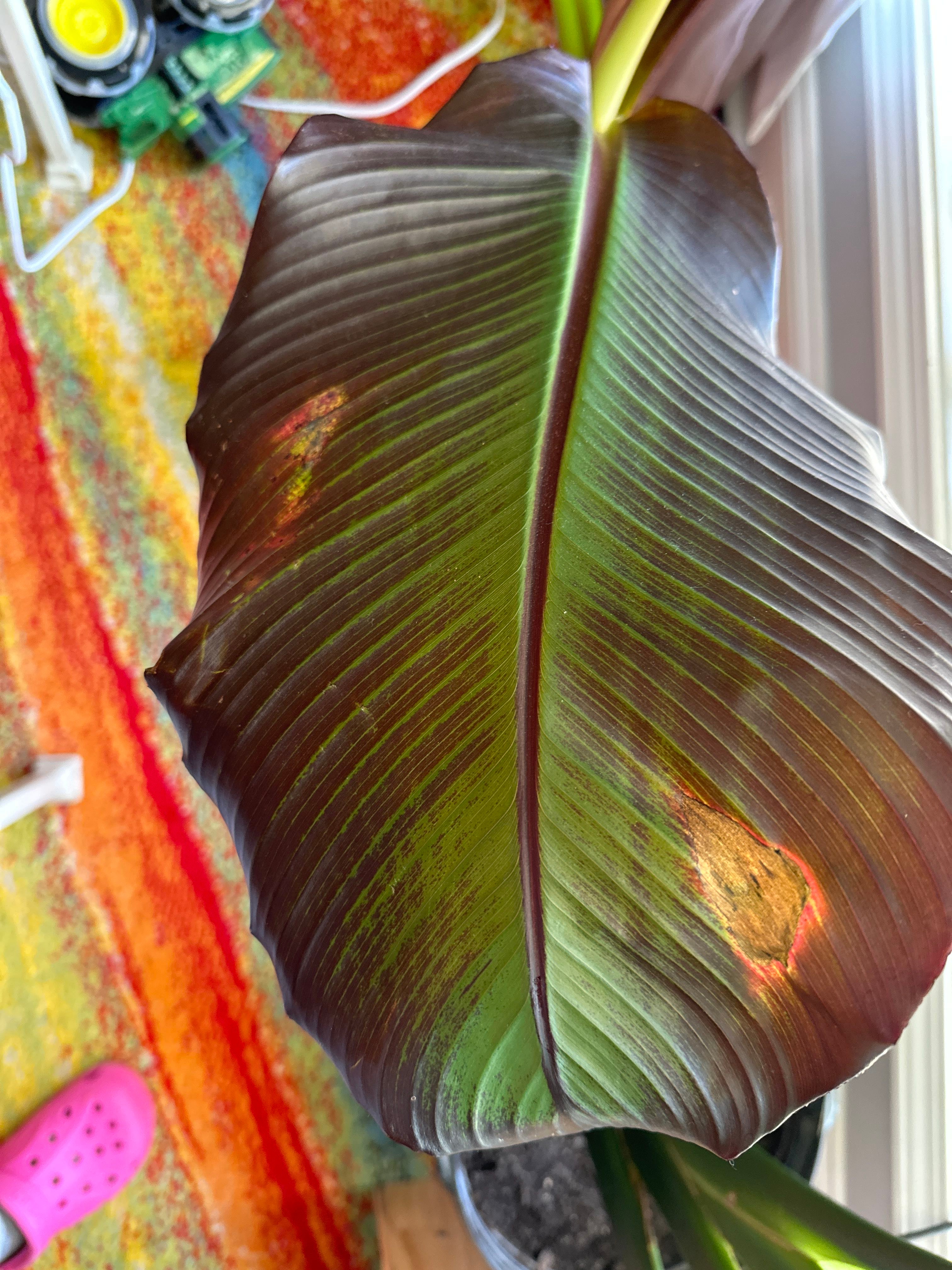 My Abyssinian Banana tree is getting some red and yellow leaves I live in the very hot and humid Midwest. My tree has been living on my porch in direct light. It’s been extra hot here and I’m wondering if it’s getting sun burnt?