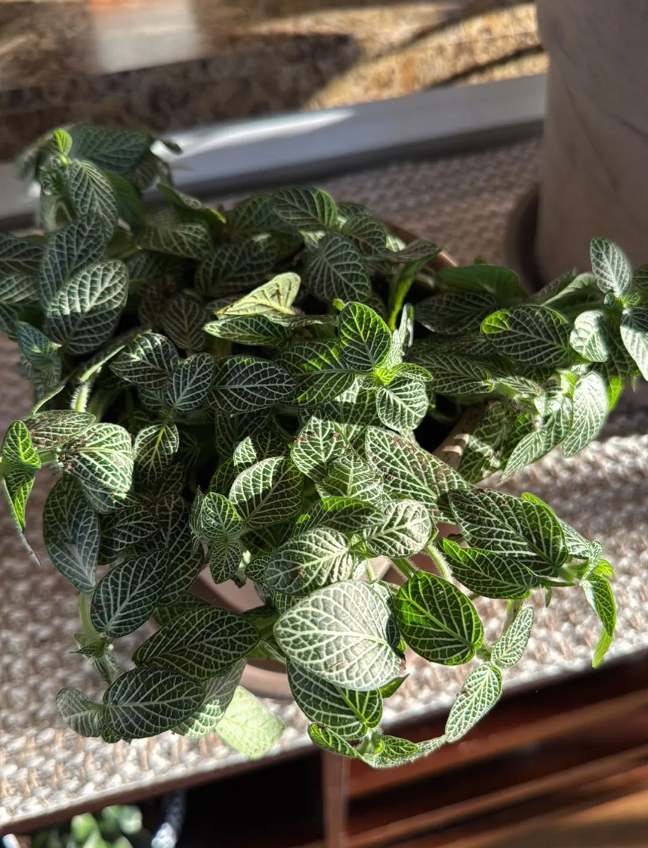 Fittonia 'Nana' may have difficulty thriving, and will drop leaves 🍃, without ample sunlight.