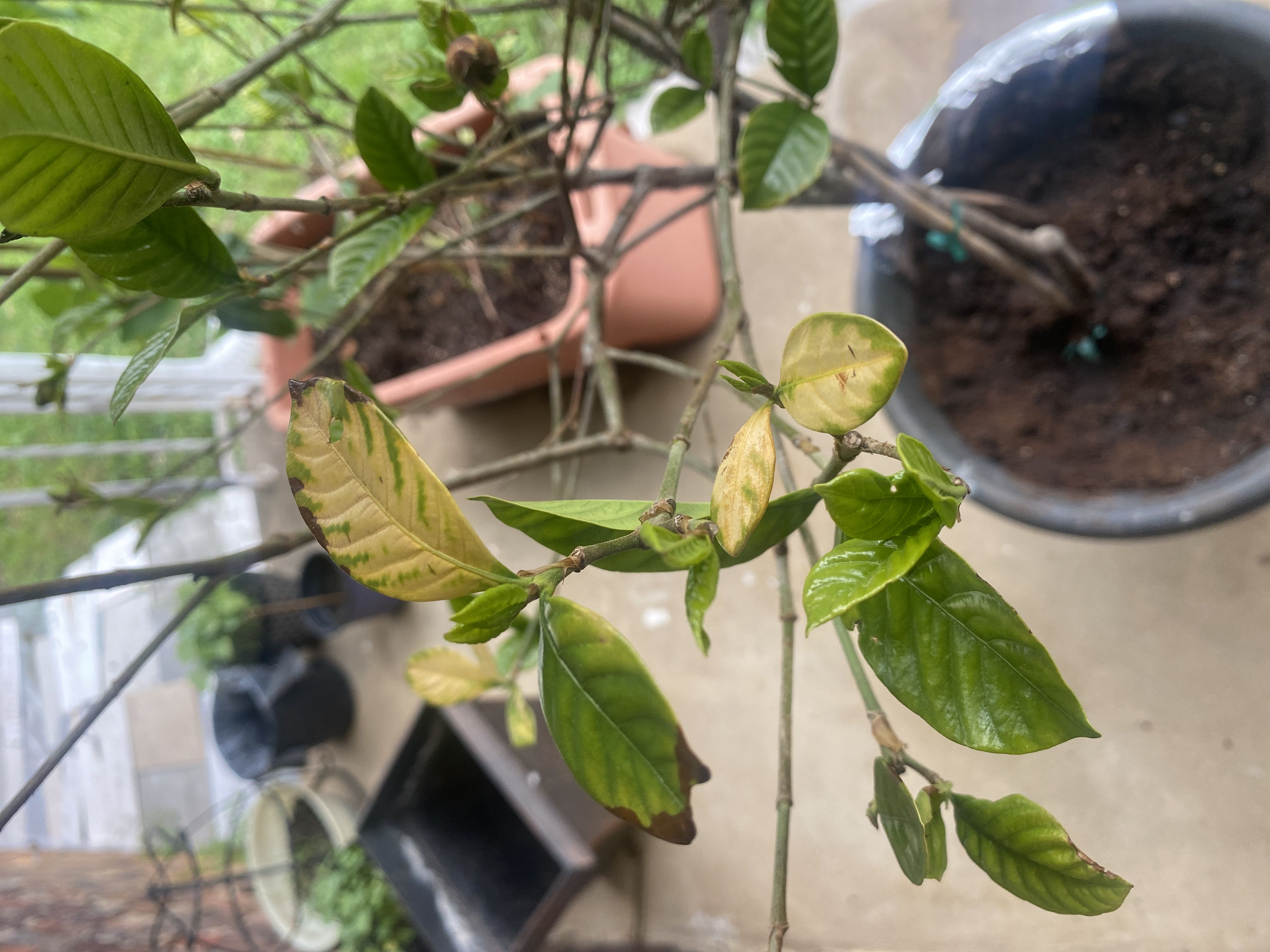Yellow spots/leaves #Gardenia There are yellow leaves and brown spots on my gardenia, what’s wrong with it?