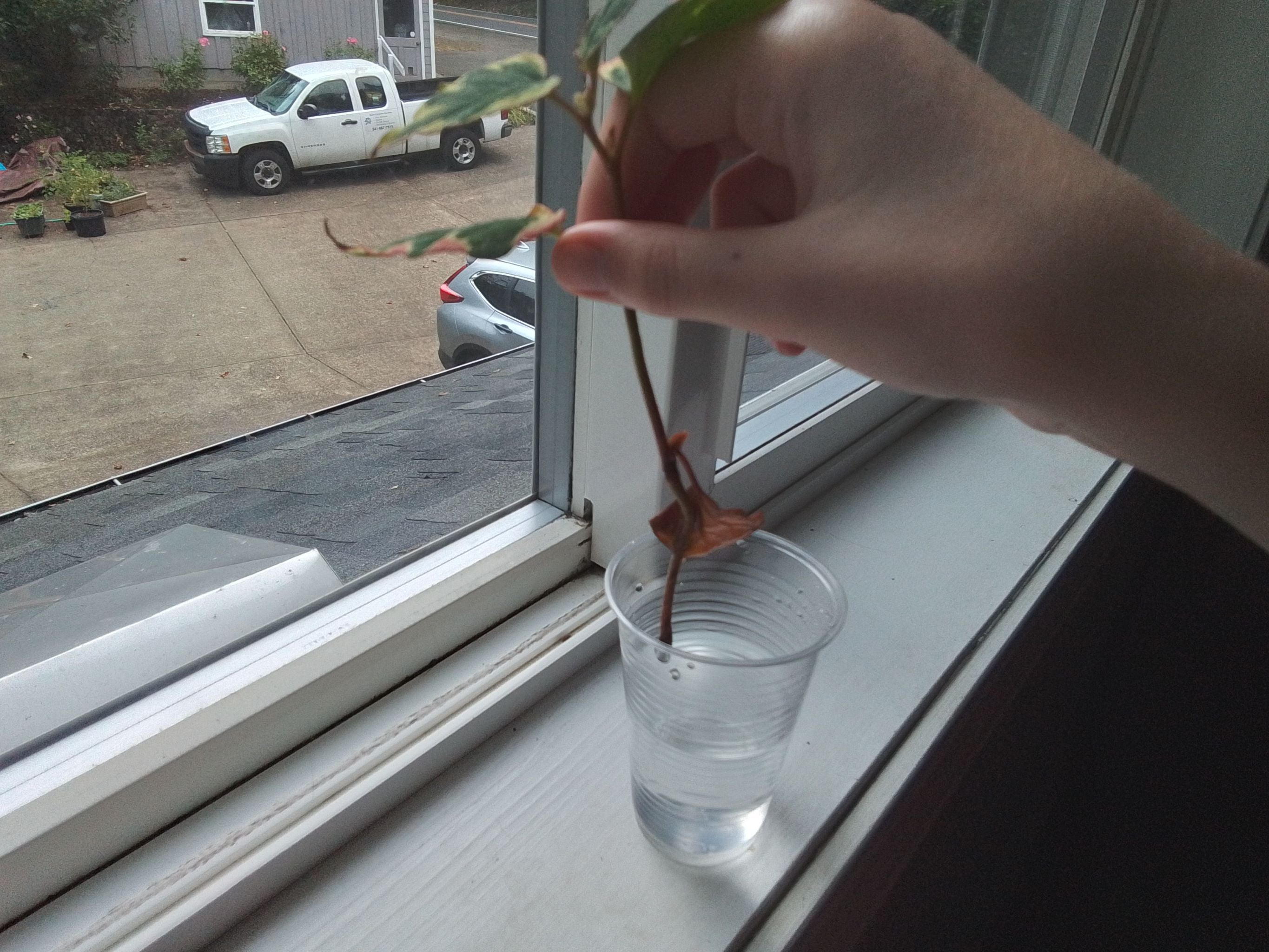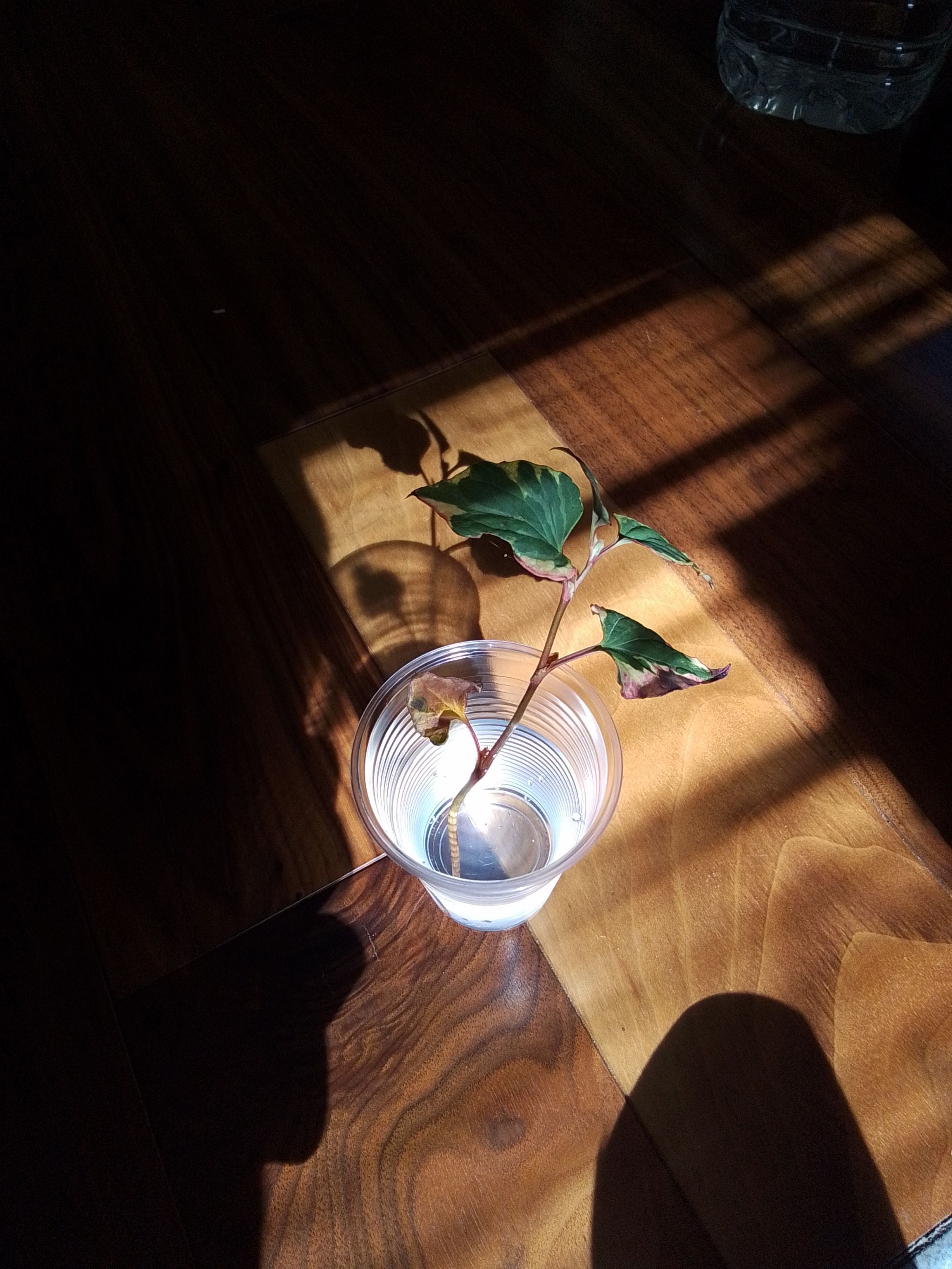 HELP!!! My #fishwort still has no roots, browning leaves, and one of her leaves snapped! Today, I woke up and realized her leaf snapped. I'm so sad 😭 😭 😭 😭 😭 😭 😭 😭 I don't want to kill her! Just swapped from using well water to drinking water because she was weakening. I also changed the window direction from SE to NE. I'd appreciate ANY advice!! She's so sad 😞 #planttherapy #dyingplant #help #plantsmakepeoplehappy