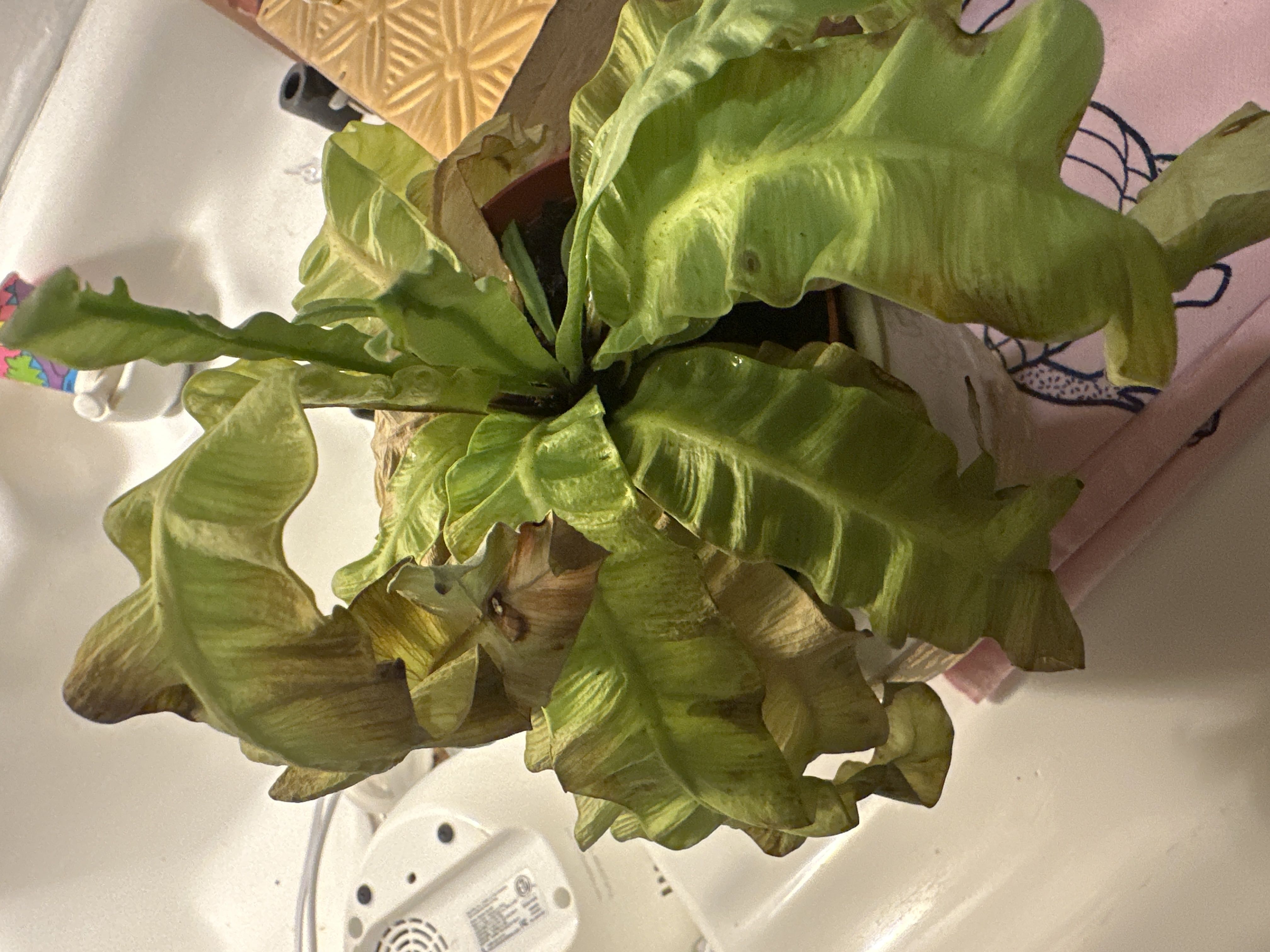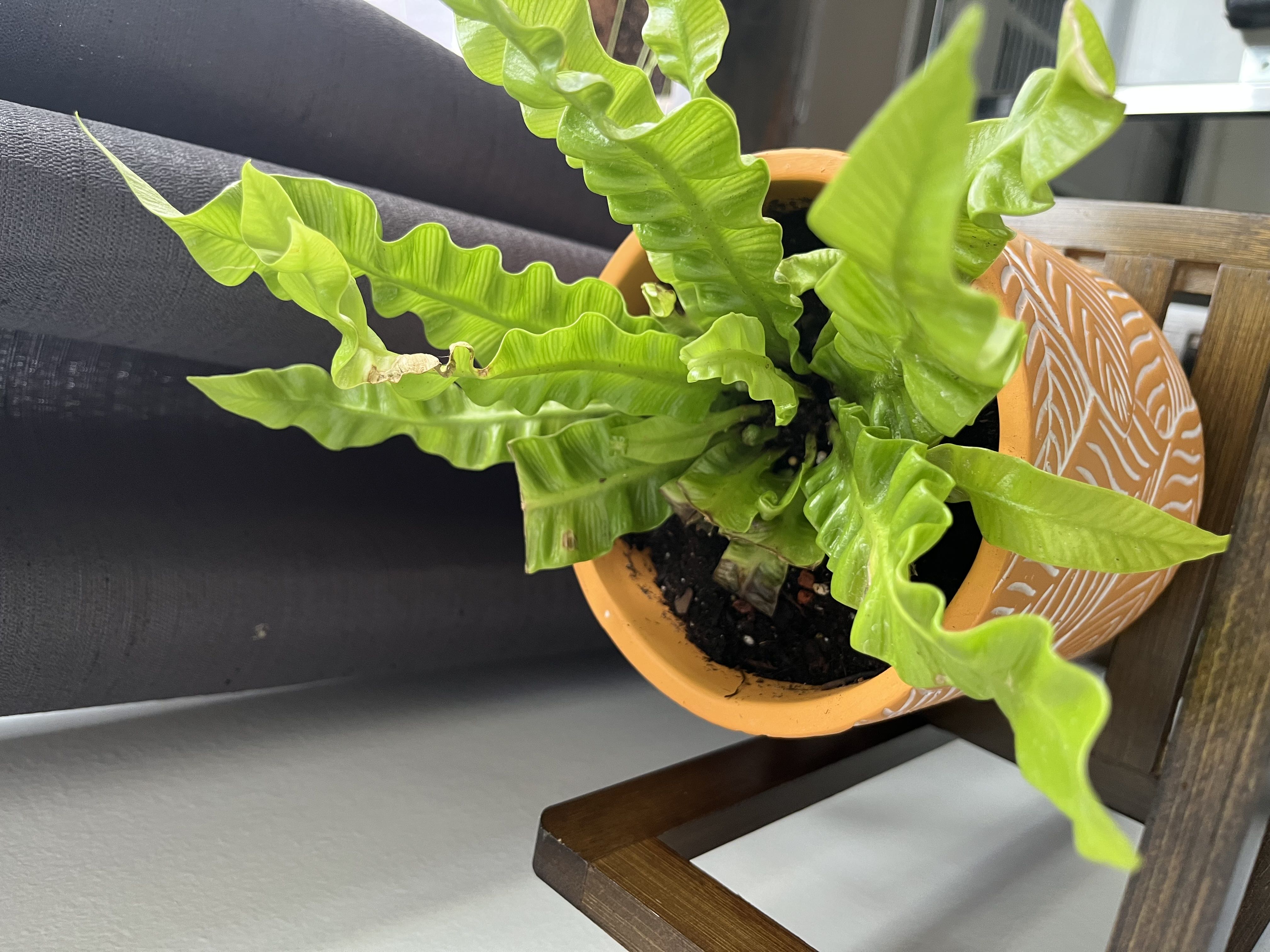 Newbie here 👋🏾 So I had this same fern (crispy wave fern or birds nest fern) a few years ago and totally neglected it. Laverne was my first ever plant and I wasn’t worthy of her 💔 But, I’m reinvigorated to start my plant journey so I bought this little number online. I’m kind of regretting it now because of how she came. Maybe I should’ve just bought her in person instead. I’m sure all online vendors aren’t created equal though. Any advice on the browning spots? I cut a few of the leaves that were totally brown but I’m not sure if it was the right thing to do 😬🙈 #Fern #CrispyWaveFern #BirdsNestFern