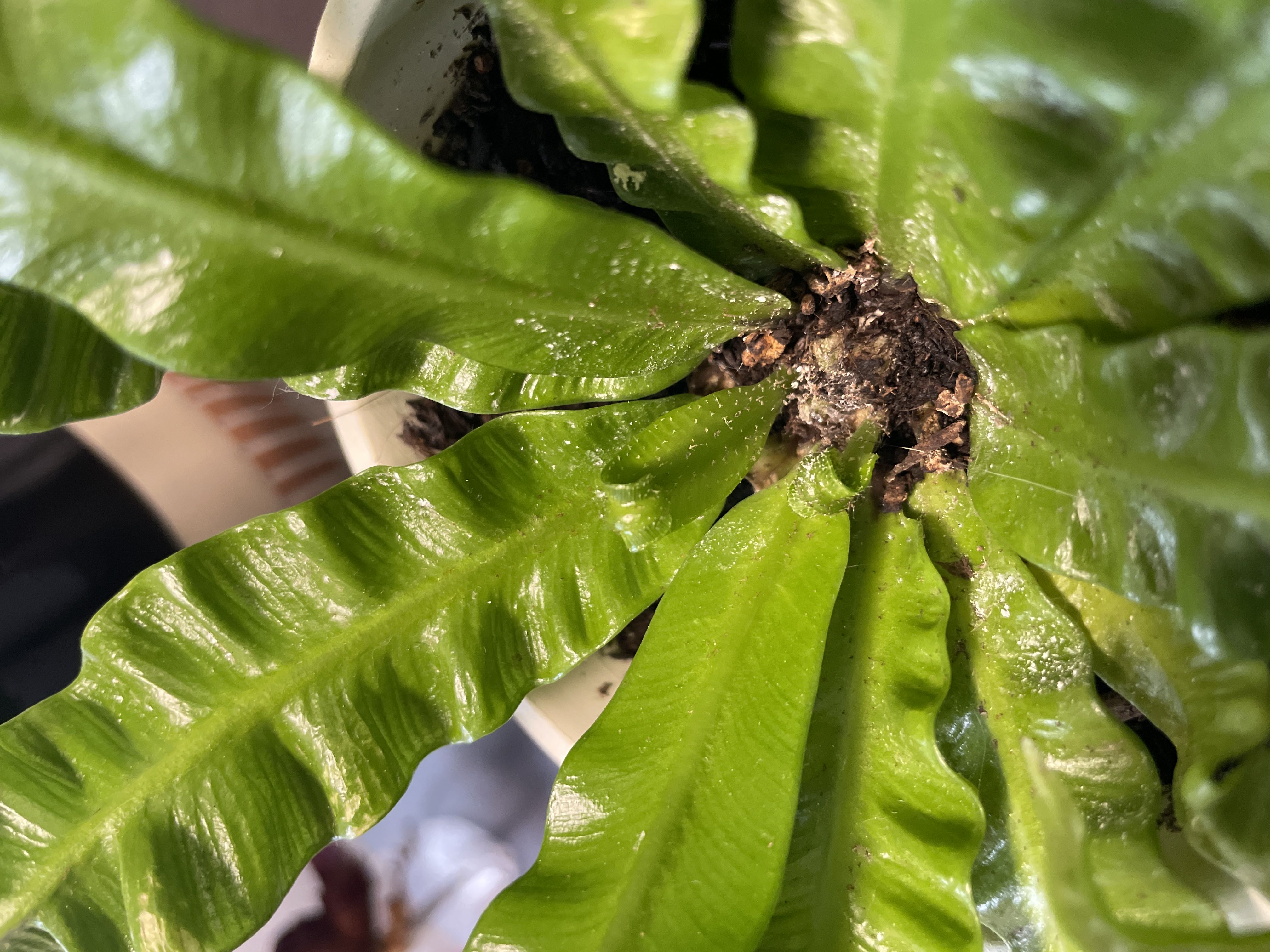 I have no idea when this little guy happened but yay! (As I’m writing this I just noticed there two of them!) #CrispyWaveFern #NewGrowth #leaf #HappyPlants