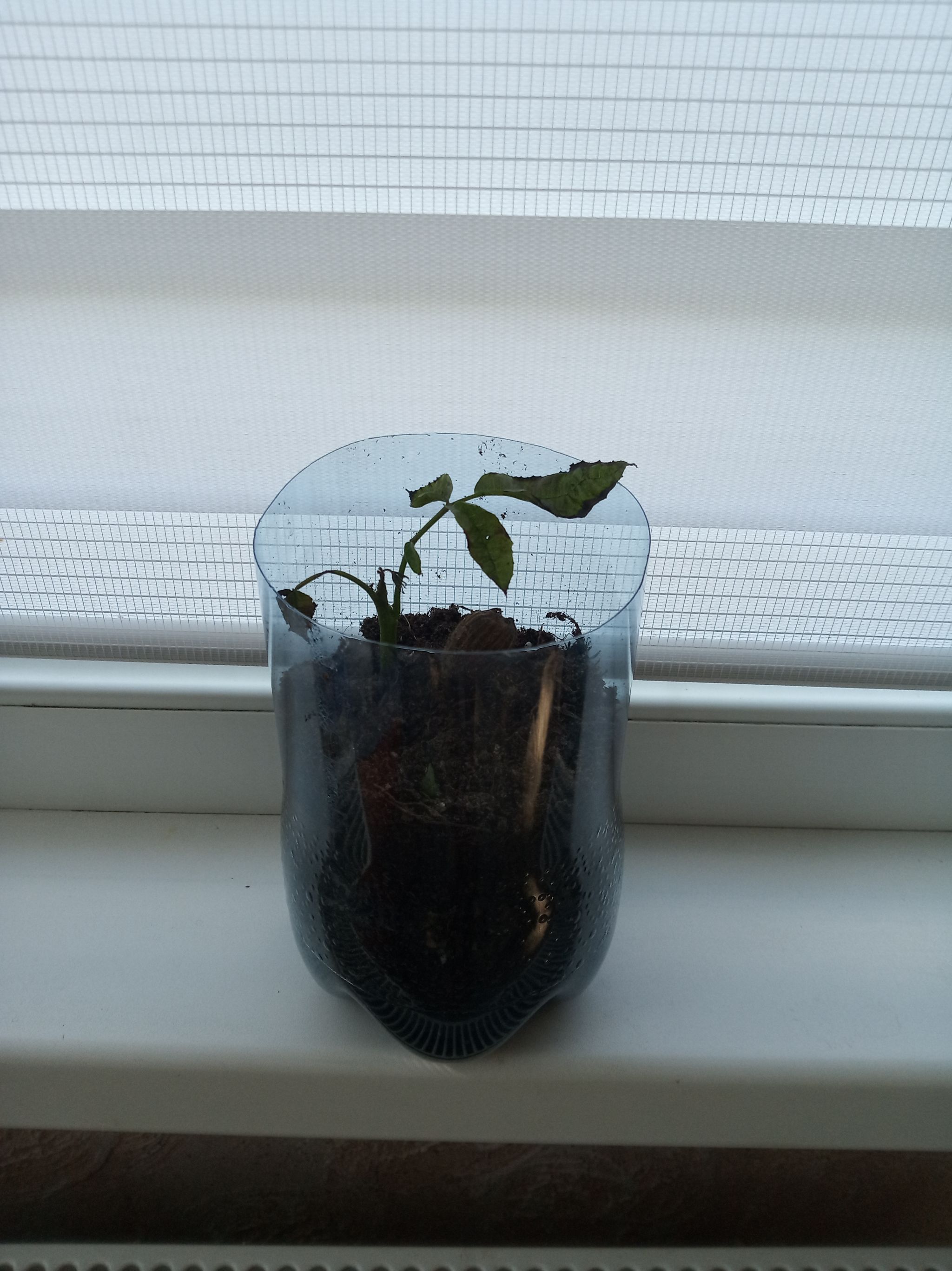 hey, plant people, the statement of my walnut plant has gotten worse :( Is this caused by any pest (he is growing indoors, there are not many insects) ? I reppoted him and his root seemed fine, the black edges have expanded, some leaves are turning brown, it looks like he has got a little hole in one of his leaves and all leaves have shades of brown. #walnut #EnglishWalnut #Repotted #IL