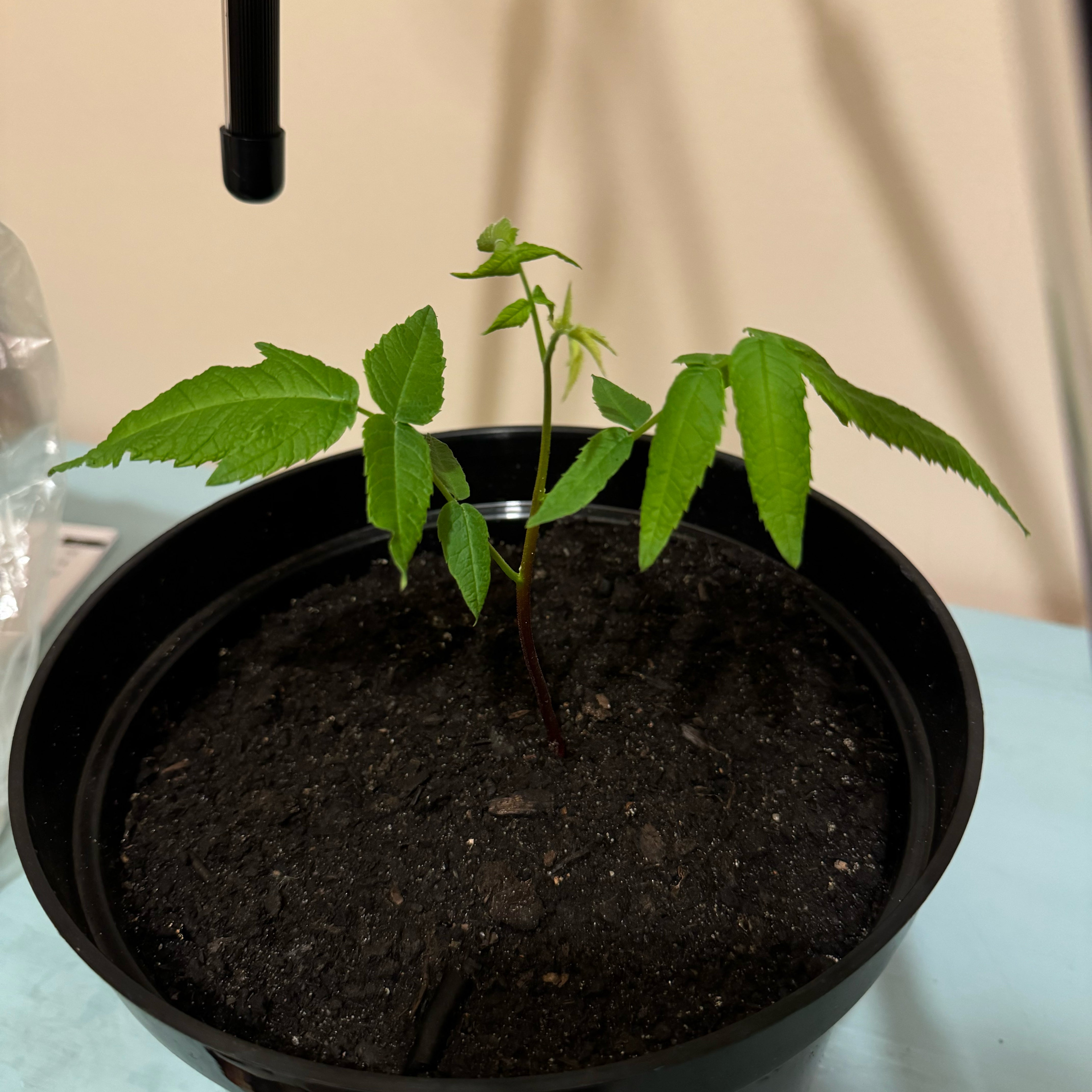 hi, my walnut sapling has some black edges, some leaves started to turn yellowish. I think I should change it's pot. Or should I give it more sun and less water ? What do you think ? (is this edema?) #walnut #sapling #replacement #IL