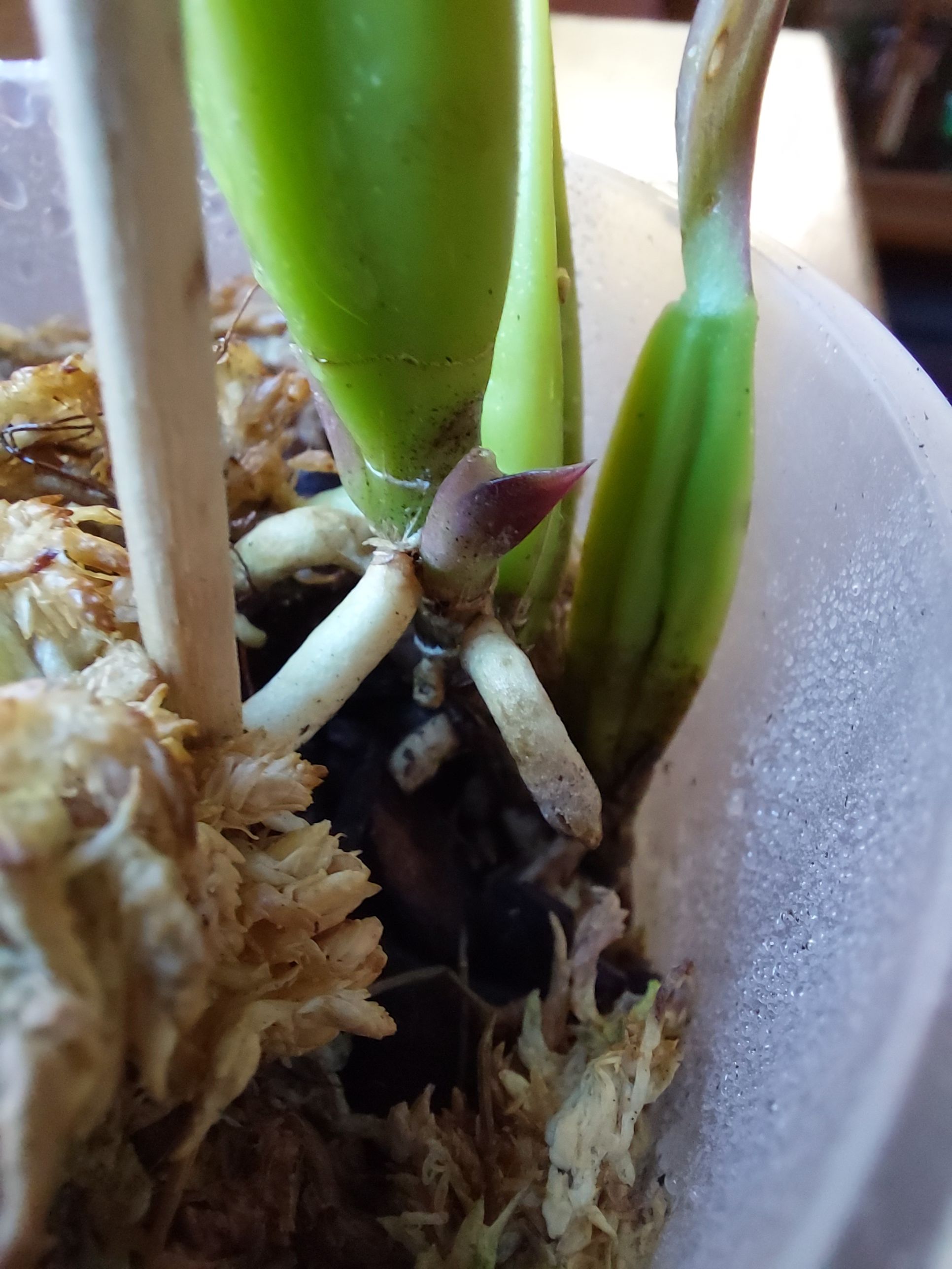 Even more great news - and on time for #freshleaffriday too: My Fighting Kate (my most vigorous cattleya (species) seedling) is growing herself a new pseudobulb. I am pretty certain she only does that once a year, and apparently she survived this difficult time acclimating to my apartment and her repot without any major setback and root loss - which is a marvel, especially since she is still this tiny. I am absolutely psyched 🥳🌿🥳 you go, girl!!! 🥳🌿🥳 Now only to keep the mites away from her... 😬 #plantsmakepeoplehappy #orchidlovers