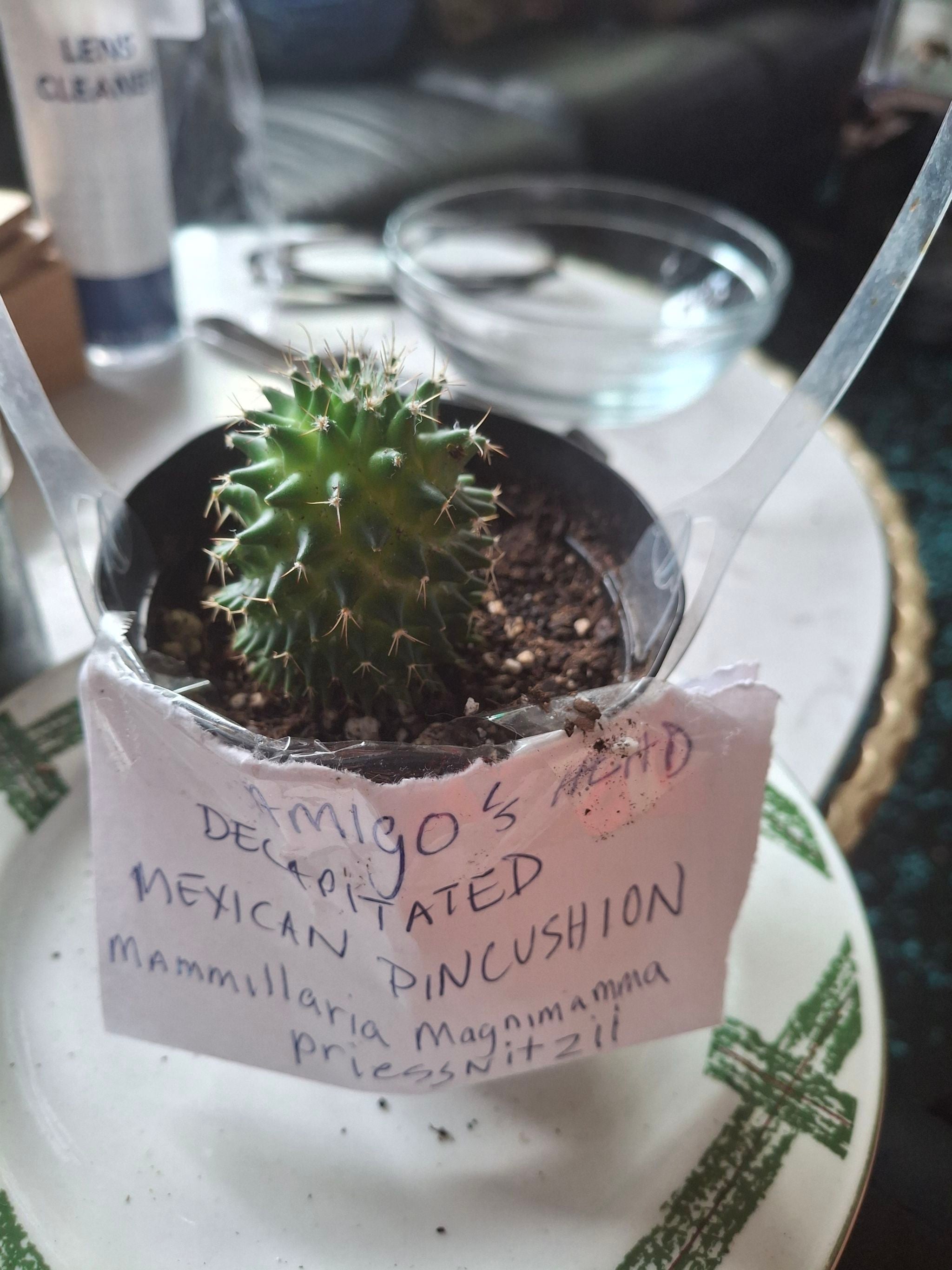 "AMIGO'S Decapitated Head" is growing faster than his Body! Before and After! It was just the very top part of his brain Brain when "Amigo",got assaulted and knocked from his Window sill, which resulted in his DECAPITATION. SO..I said that kinda means I have two Cacti Now. I PLANTED Amigo's HEAD , and His body. His head is Now Twice what it was a few weeks or at most 2 months. Ago. #happyplants #plantsmakepeoplehappy #plantaddict #newgrowth #propagationstation #succulentlove #