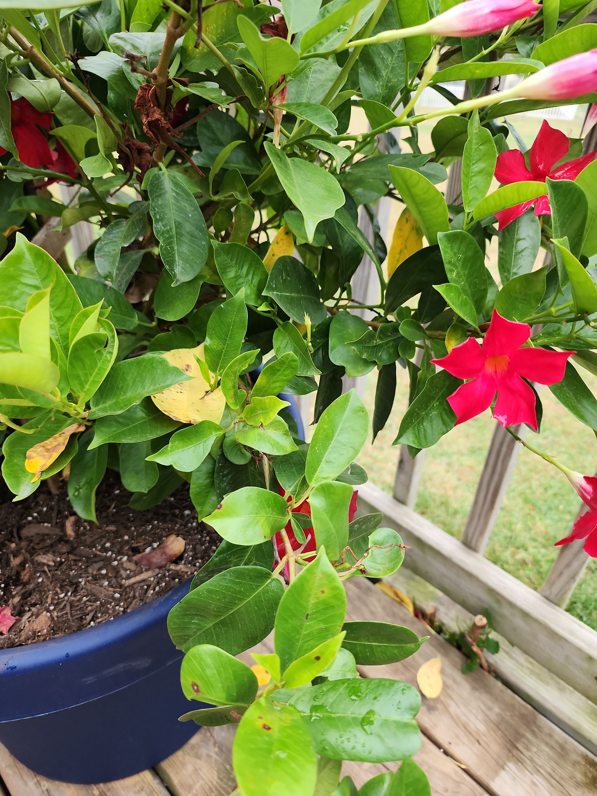 Jasmine was doing fine now one stem has lost all its leaves. We've had a lot of rain lately. Could that be the problem? Thanks for any suggestions. #BrazilianJasmine