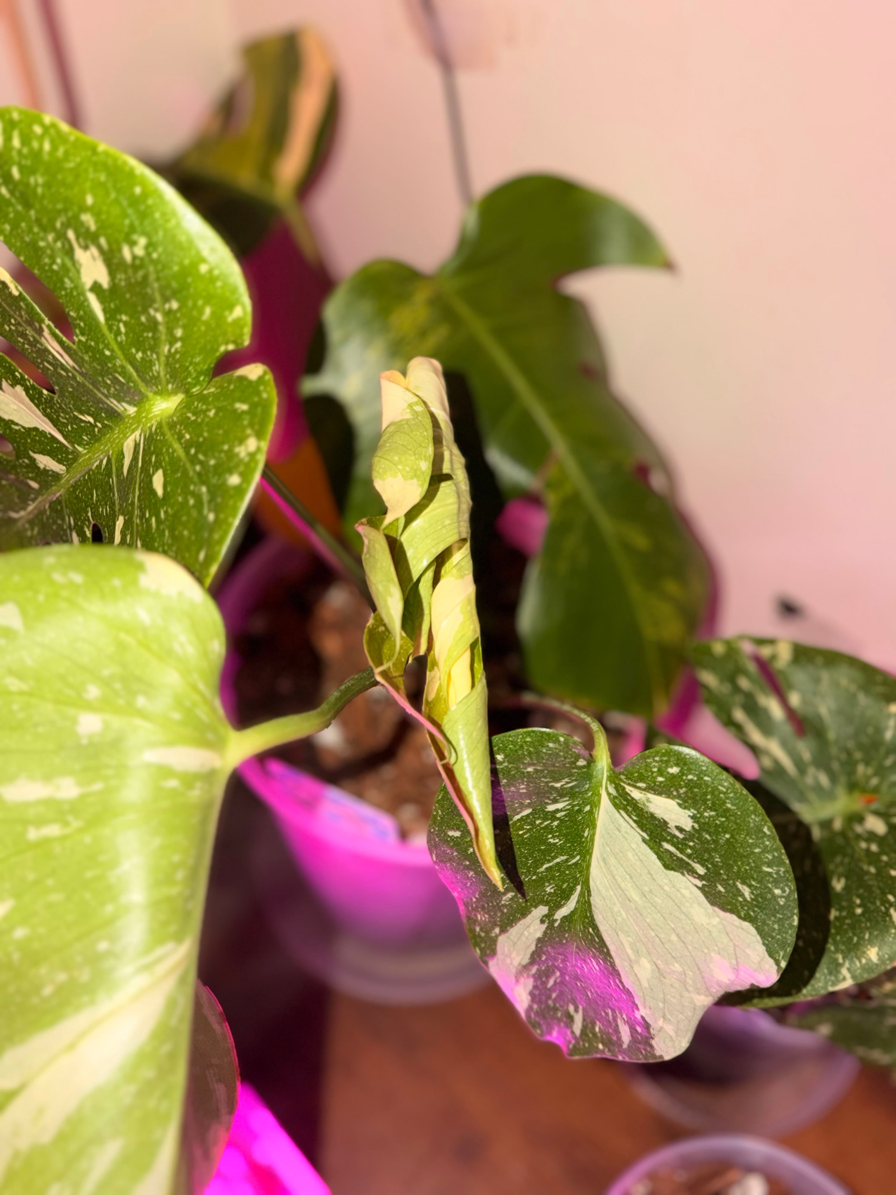 Remember the new leaf Nessa was putting out? This is what it looks like ššš #HappyPlants #PlantsMakePeopleHappy #PlantAddict #NewGrowth #NewLeafAlert #Monstera #MonsteraMonday #MonsteraMob #ThaiConstellation #variegatedplants