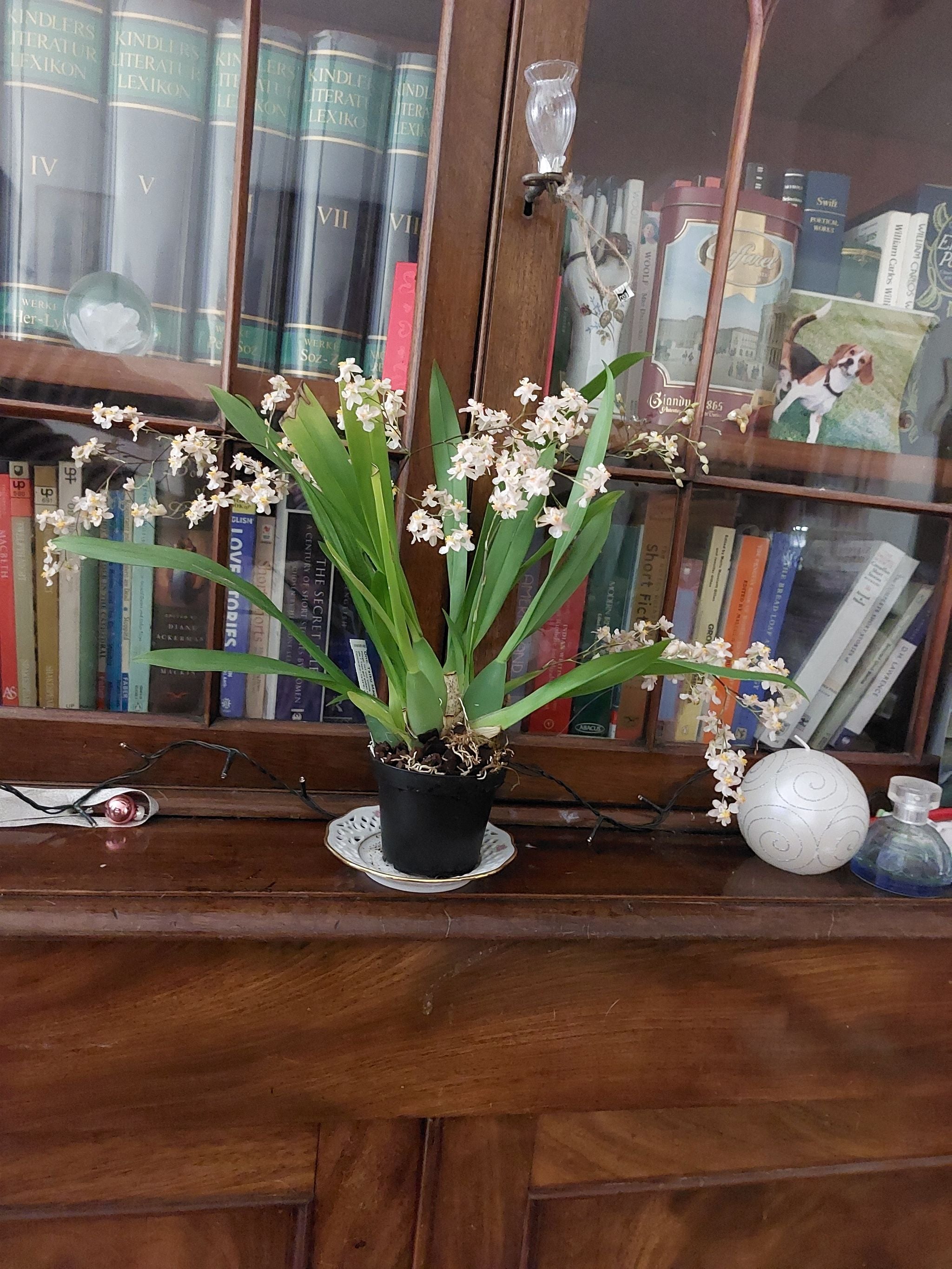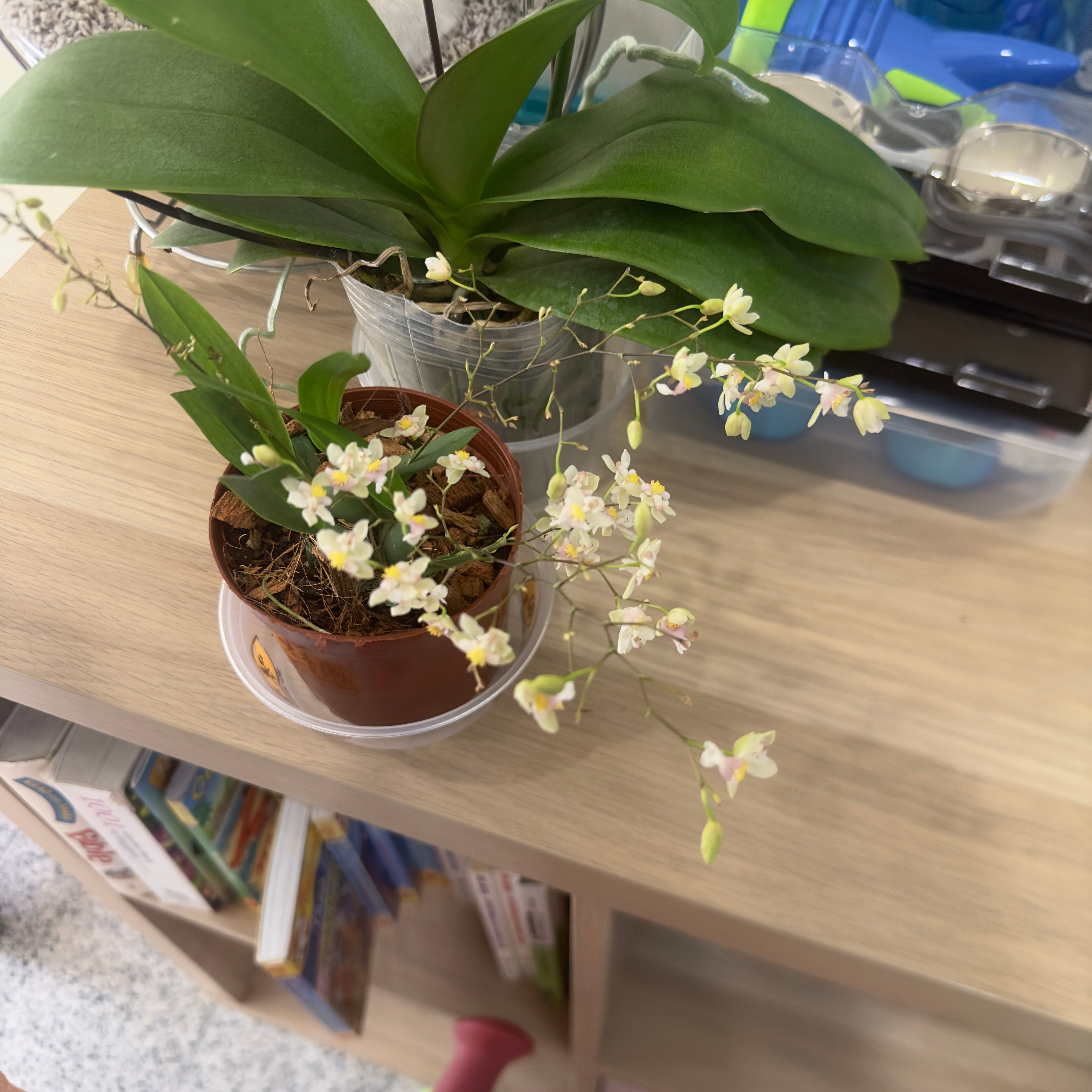 So I do not only rant about my new pest problems, here a more positive post: my oncidium jairak fragrance blooms again and is... well... very fragrant. It fills all of my living room with its smell and is, to this day, one of my most fragrant orchids. Though I still maintain it doesn't smell like chocolate, but rather very sweet, a slightly (not unpleasantly) burned marmalade with floral undertones (others that have smelled it, swear it smells like chocolate though, so what do I know🤷♀️). It is kicking off my coming oncidium blooms, though who knows how long they will still take - they are quite the tease. Also, as happy as I am, I really do not know why it is blooming again so soon. It hasn't grown a new pseudobulb since the last bloom. Maybe the rhyzome has been damaged, and I have two different plants in there? If so: yay, more burned marmalade for me. #orchidlovers #happyplants
