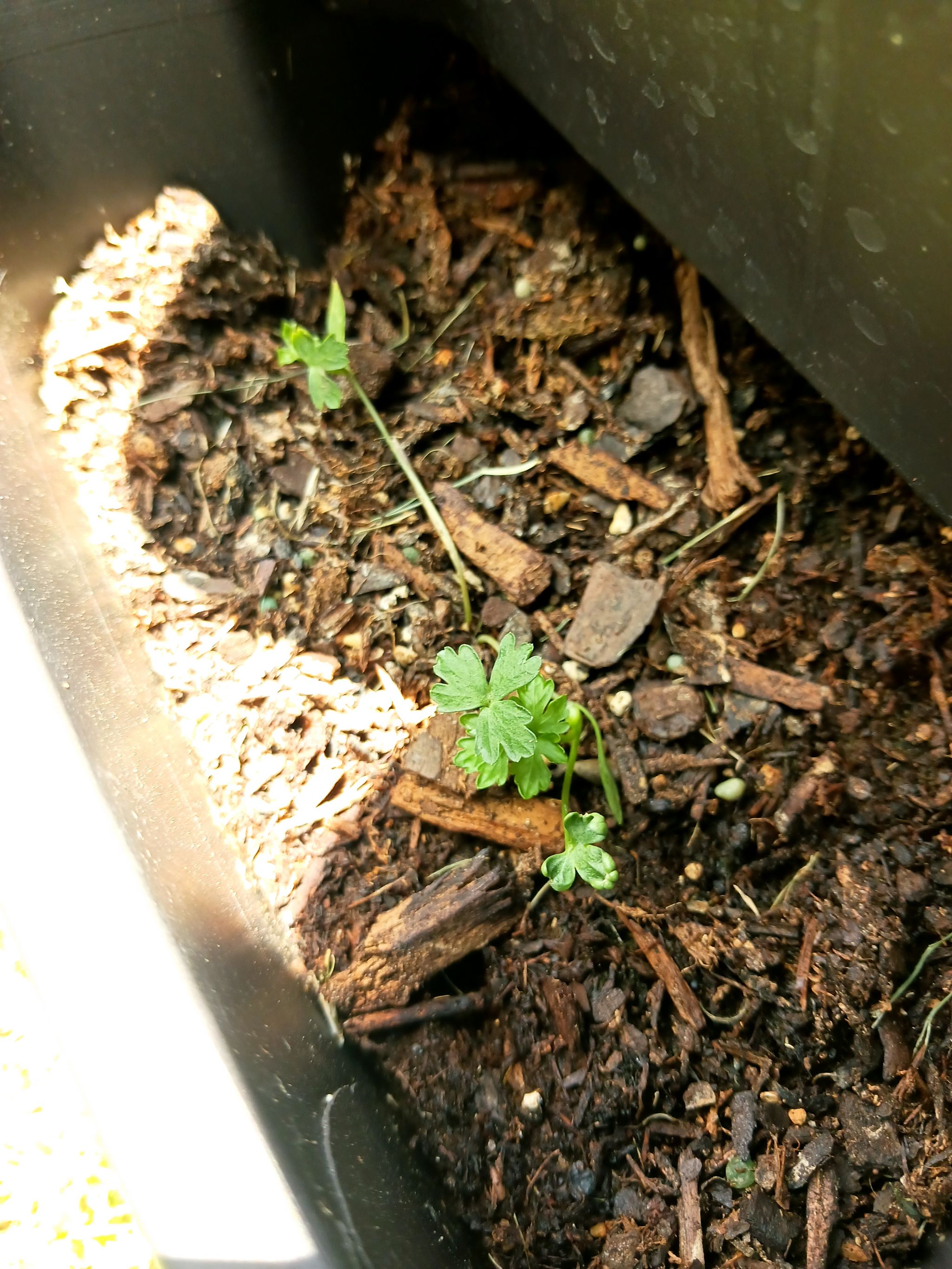 So I just planted this lil fella about a week ago and idk but it just seems like it’s getting weaker to me , is it possible it’s too much sun? Or not enough watering to soil ? Anyone with any ideas ?? #ItalianParsley