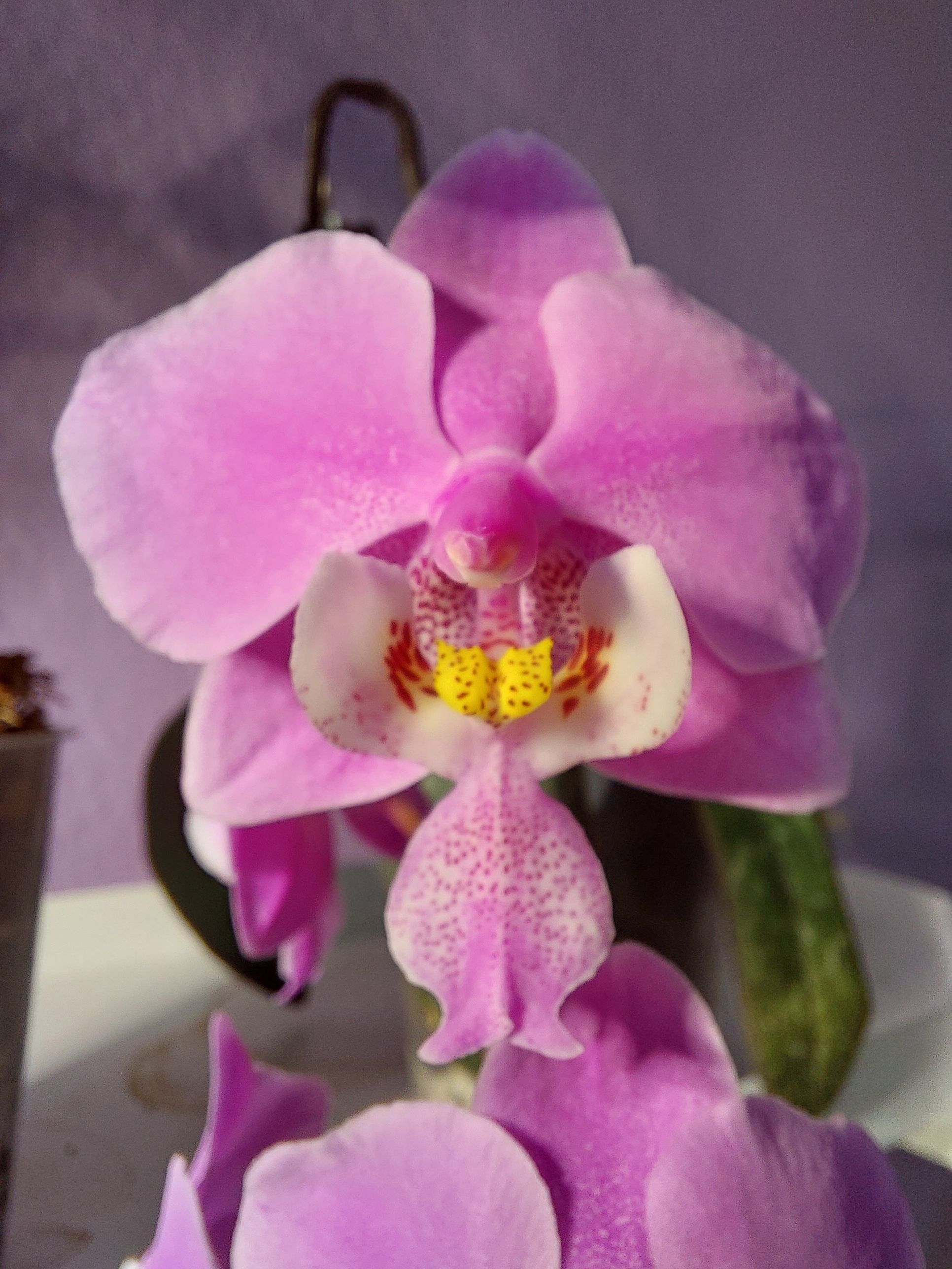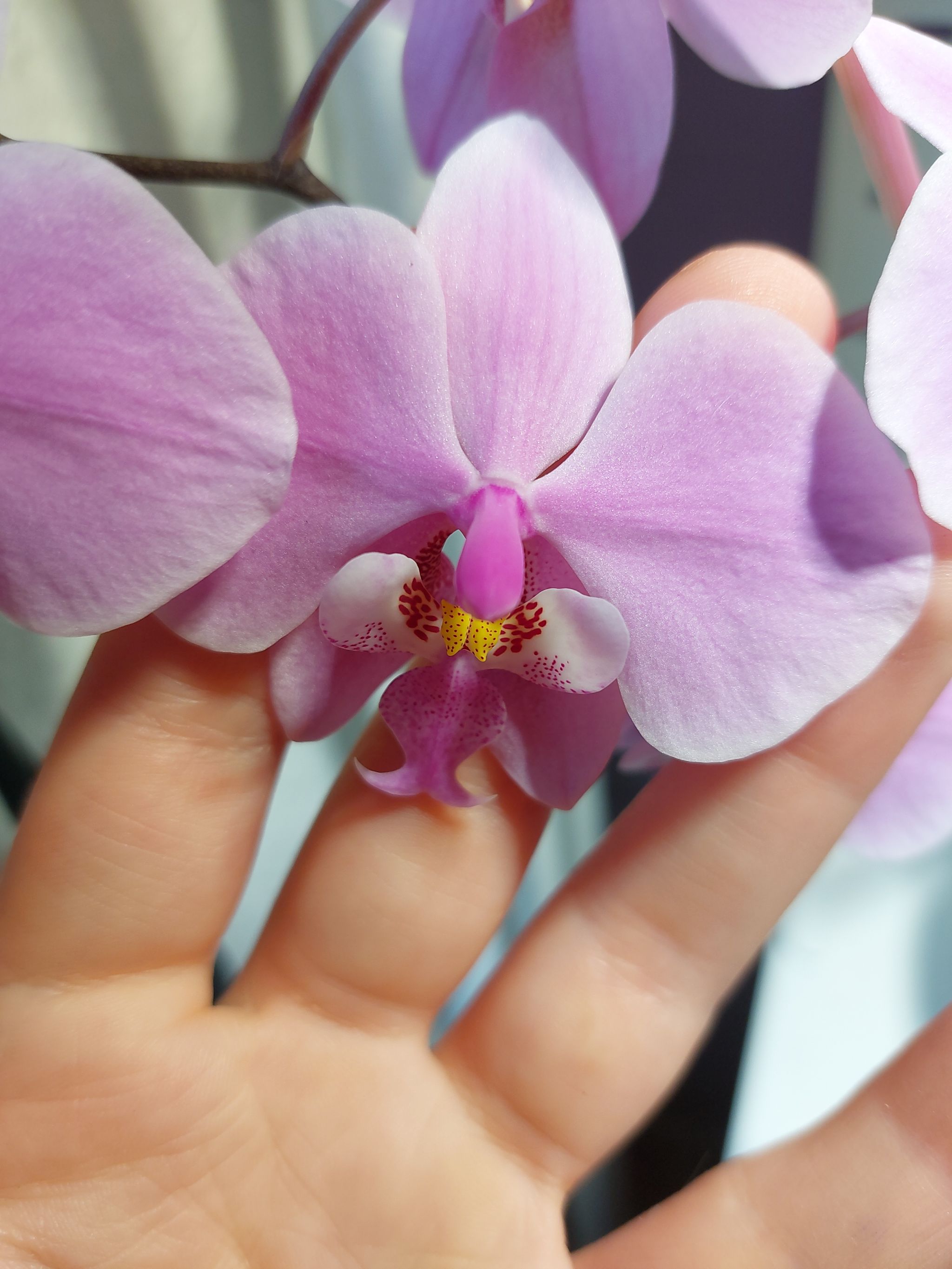 Not everything is death and destruction around here: my schilleriana bloomed for the very first time. And it's waaay more pink than I anticipated. And with another petal shape than anticipated. Maybe she needs to grow a bit still. Now to protect her from all that aforementioned death and destruction... #orchidlovers #phalaenopsisorchid #happyplants