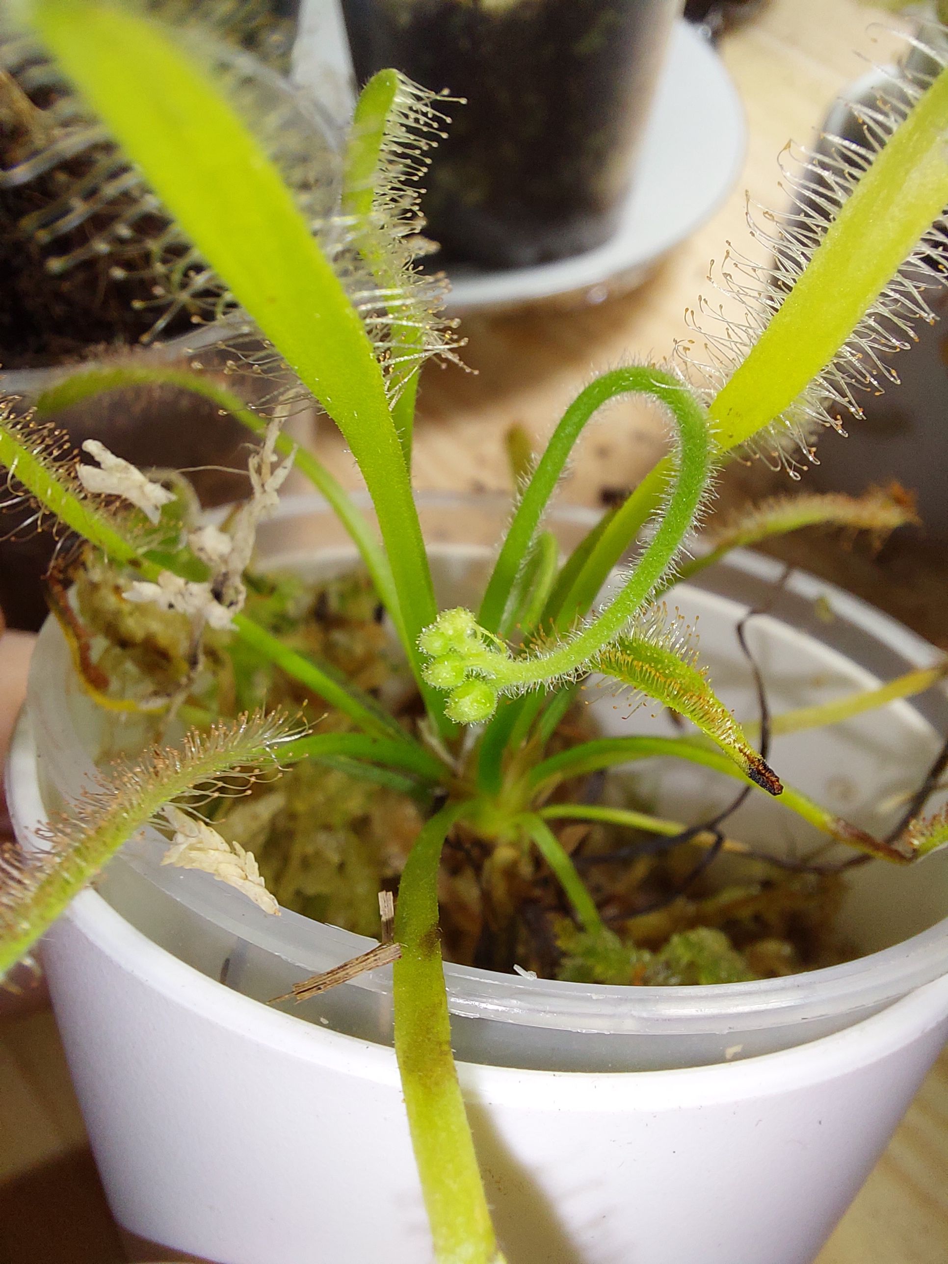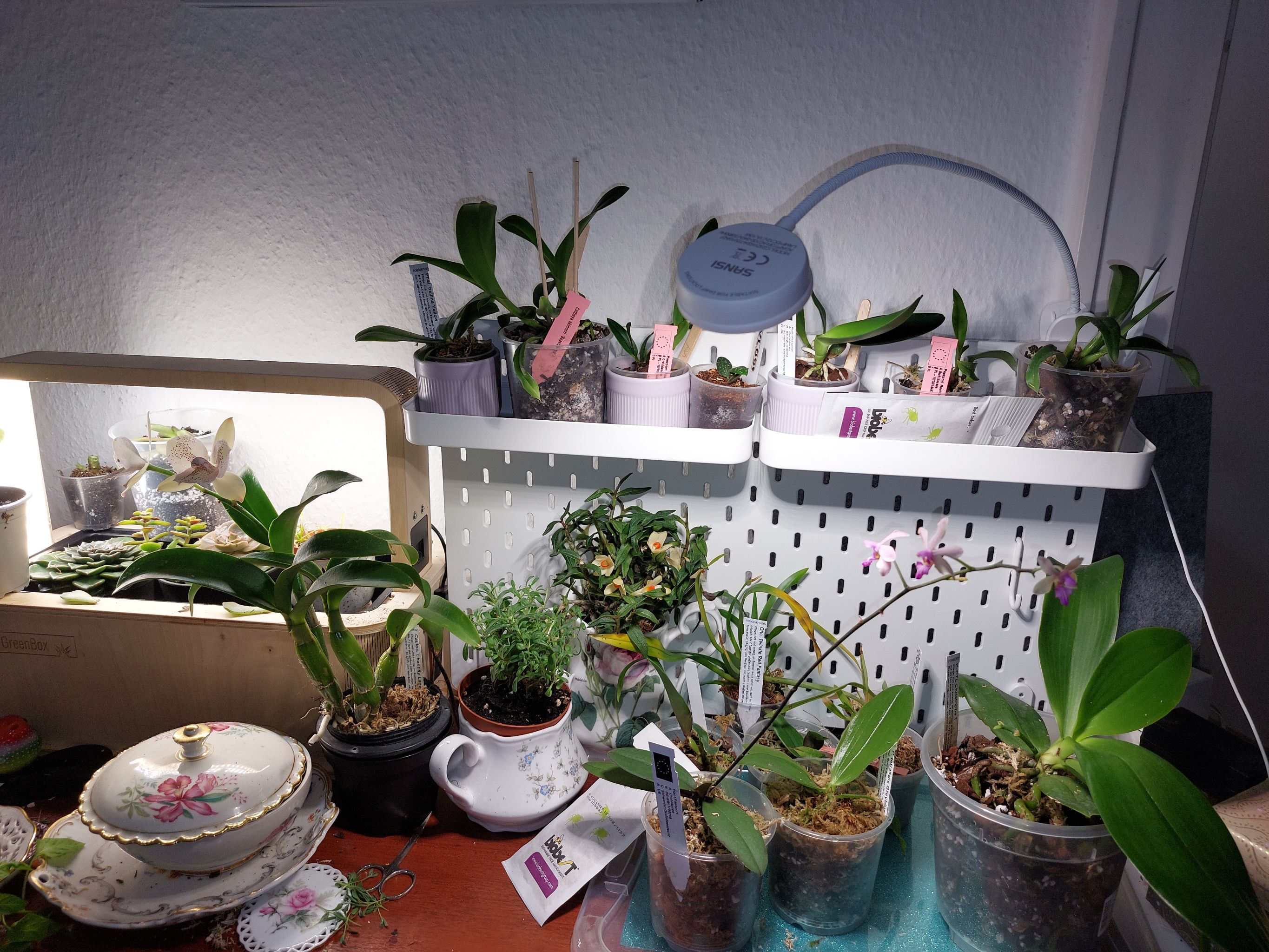 What a week. Two more dead from the killer fungus, but it's slowing down now. A mammoth repot of +20 orchids, thankfully with a great new tweezer tool. New Ikea #plantstorageanddecor ideas - just in time, my sideboard makeshift quarantine station needs to go someplace at some point in the future 😅. And more emerging spikes and blooms. My schilleriana has developed her fragrance, even if only in the first two hours of light. She smells wonderfully like roses. Additionally to my hoya bella, the other phal schilleriana is beginning to spike, another #oncidiumorchid as well, and maybe, just maybe, I have an emerging #cattleyaorchid sheath as well. Ah. And a happy #drosera, apparently 😀 Happy times ahead. 🌸🌿🌸 #plantsmakepeoplehappy #plantaddict #orchidlovers #phalaenopsisorchid