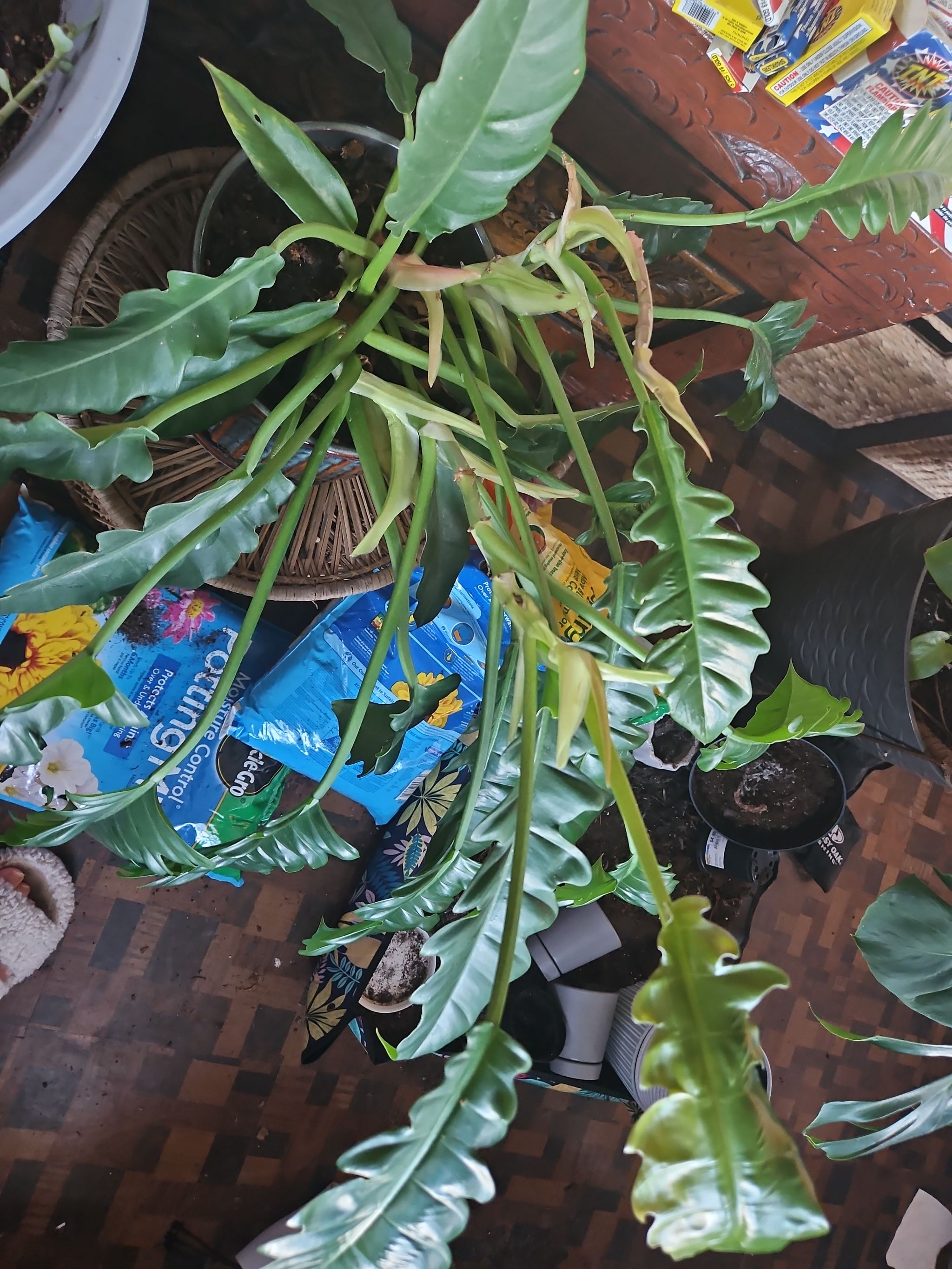 Need help with ID Hi! Can anyone tell me what plant this actually is? Iāve had her labeled as Xanadu but sheās obviously not lol. I took in a ton of fancy plants from a coworker a while ago, and she mightāve told me the correct name but I couldnt keep track of everything and just went with Gregās best option. Thanks! * I updated with some closer up pics of the vine and stem, itās a woody vine and the stems have little bumps and produces little drops of clear sticky sap.