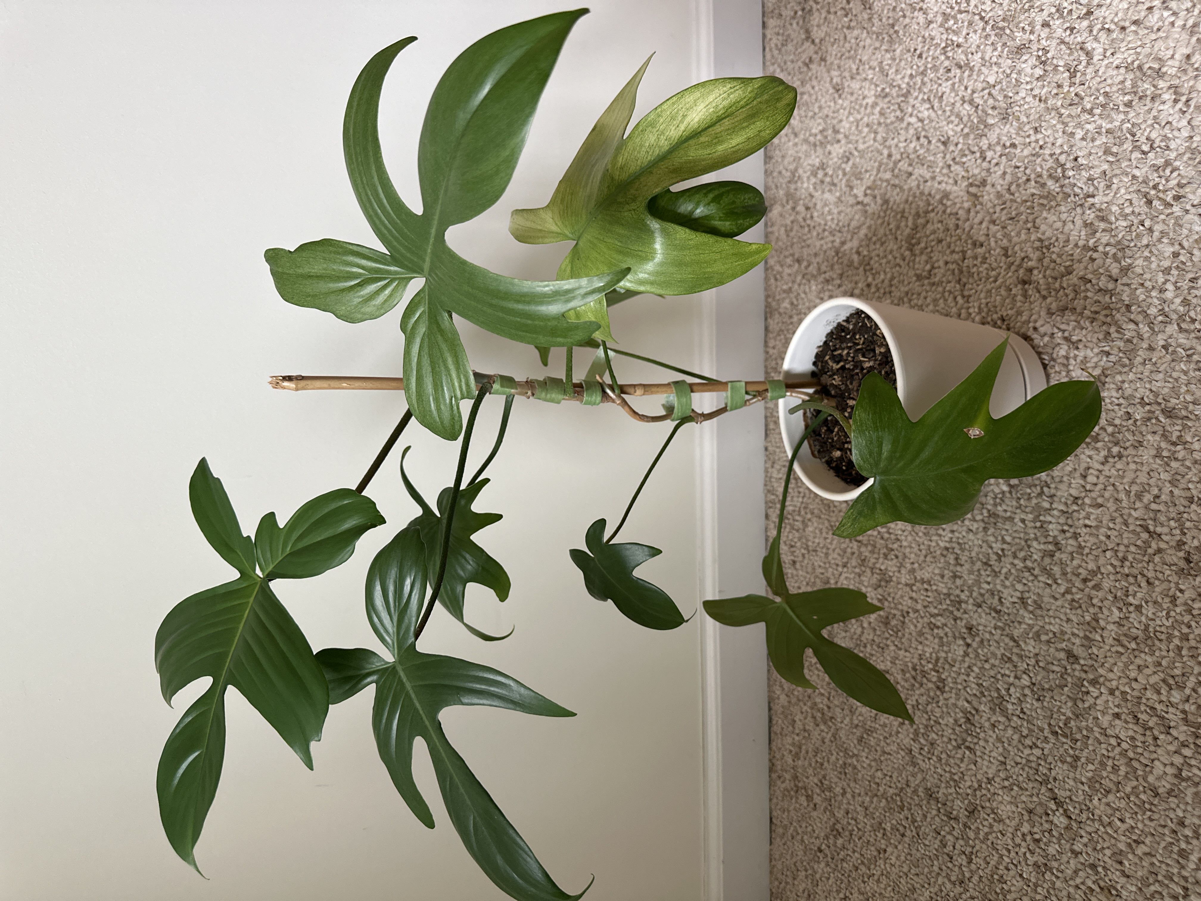 PLEASE, HELP?! Im crying out for help here! I cant find any info online about this specifically. This is "Sparrow", my variegated philodendron black cardinal. He's not happy and is giving me leaves that look like thisā [pictured]. What causes this, and how can I fix this?! ANY info/input would be a GREAT help. Thank you ā” #help #helpneeded #philodendron #funkyleaves #deficit #pleasehelpme #blackcardinal