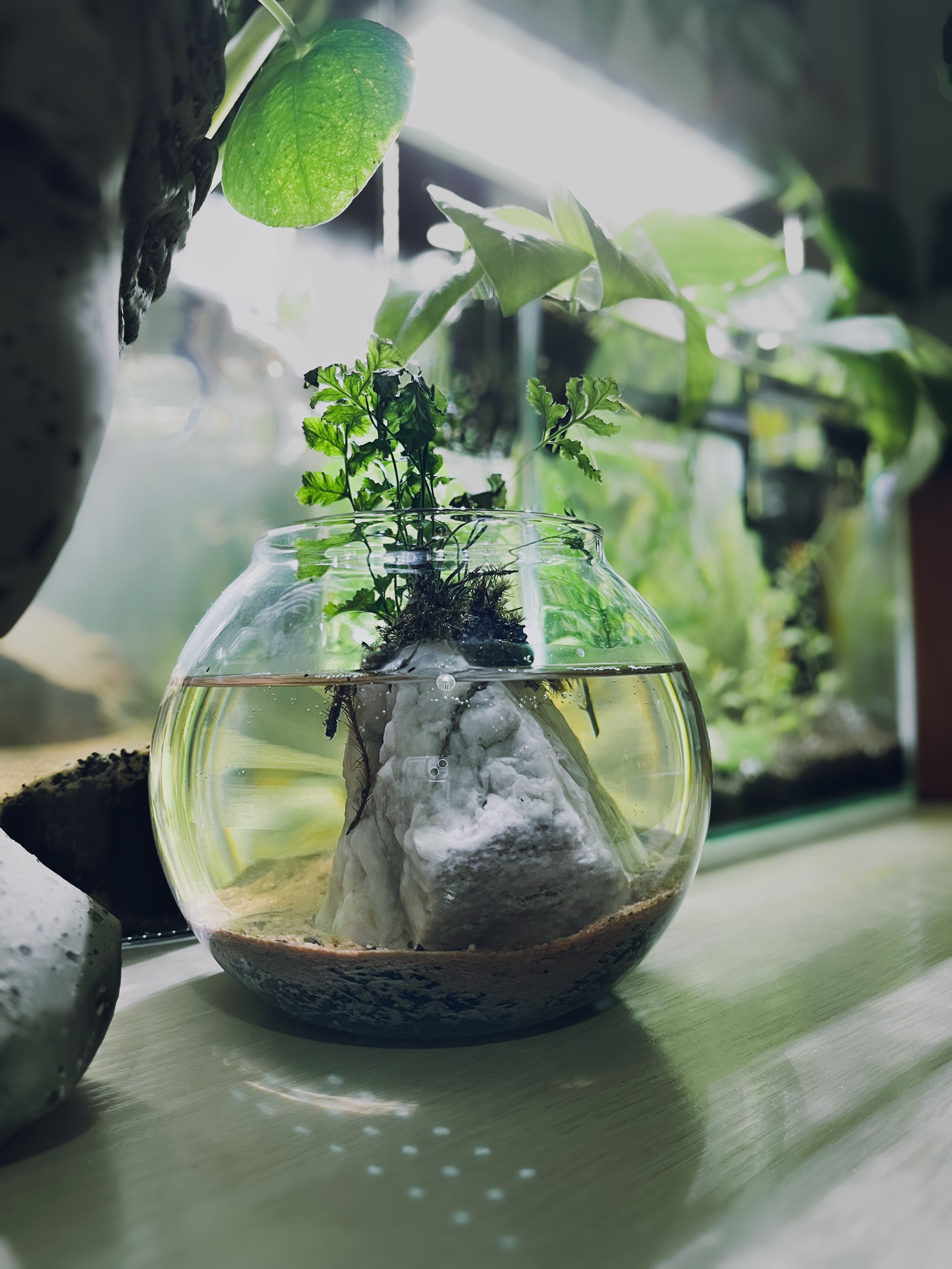 A whisper of earth in a glass world — Life condensed to a bowl. Where water teaches stillness, stone teaches time, and leaves — they teach hope. 🍃 #ArtsAndPlants #poetry #PlantsAndPoetry #ArtistsOfGreg #ecosystem #HappyPlants #PlantsMakePeopleHappy #PlantAddict #PropagationStation #FernFriends