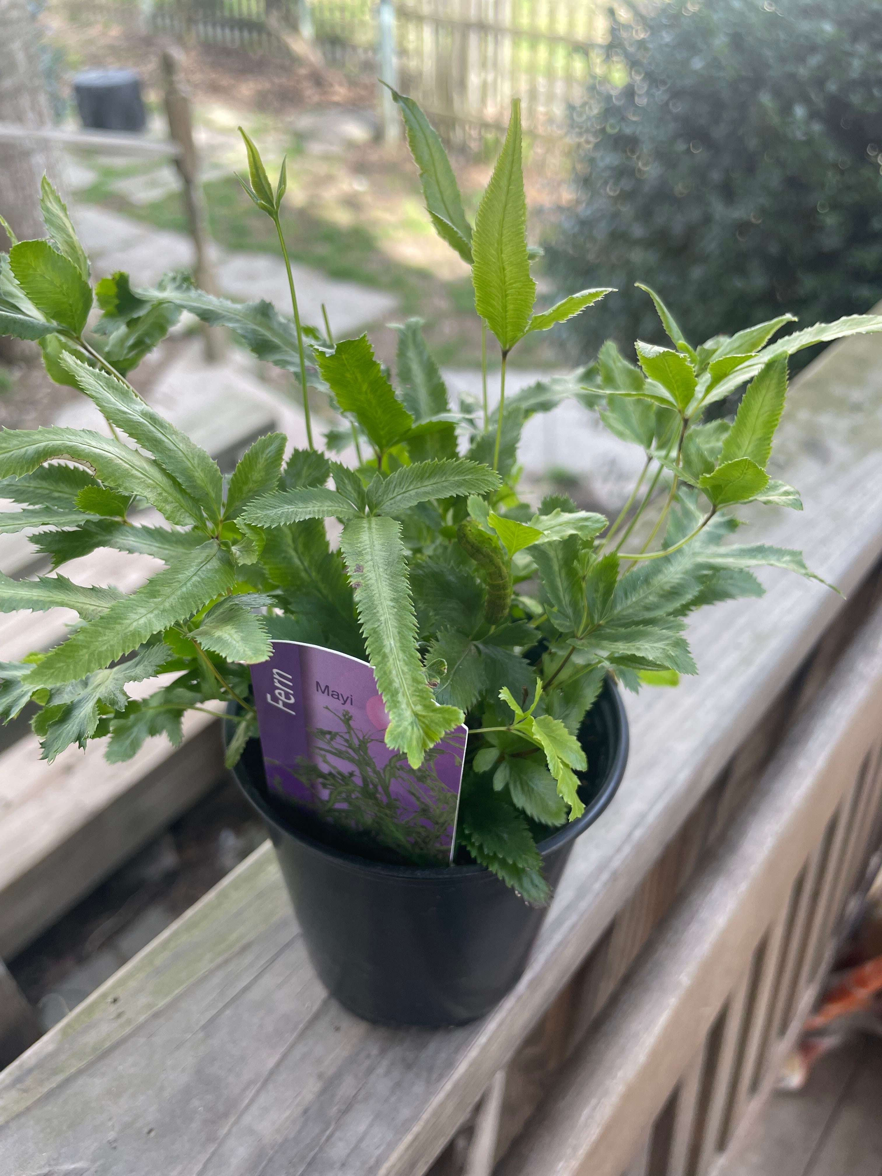 New Plant Complete with Hitchhiker Meet Fernie Sanders. Greg says it’s a brake fern (or a strawberry, or marijuana) But the tag from the garden center said “mayi”. Is that the same thing as brake fern? Brought it in the house and found this big fat caterpillar 🐛 living on it. Unfortunately, he had to go outside. I couldn’t share my home with a caterpillar. 😆 #FernFriends #mayi #HappyPlants #PlantsMakePeopleHappy #PlantAddict #PestControl #ADHDPLANTLOVERS #AddictedToGreg #neurodivergentplantaddicts #NeurodivergentandPlanty