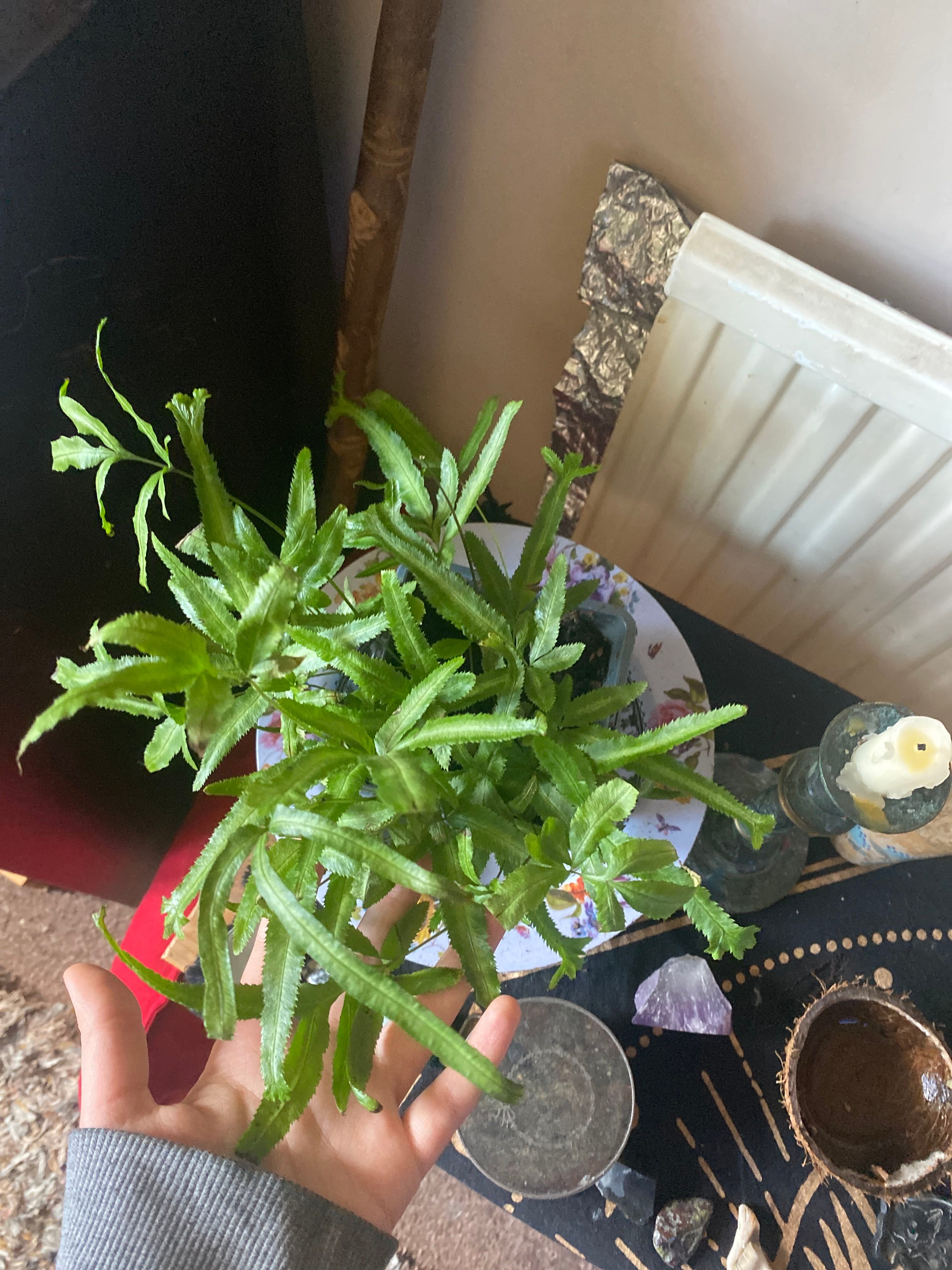 Her leaves are curling and turning brown?! Am I under watering her?! Is she sick? I’ve switched to distilled water to see if that helps #CretanBrake