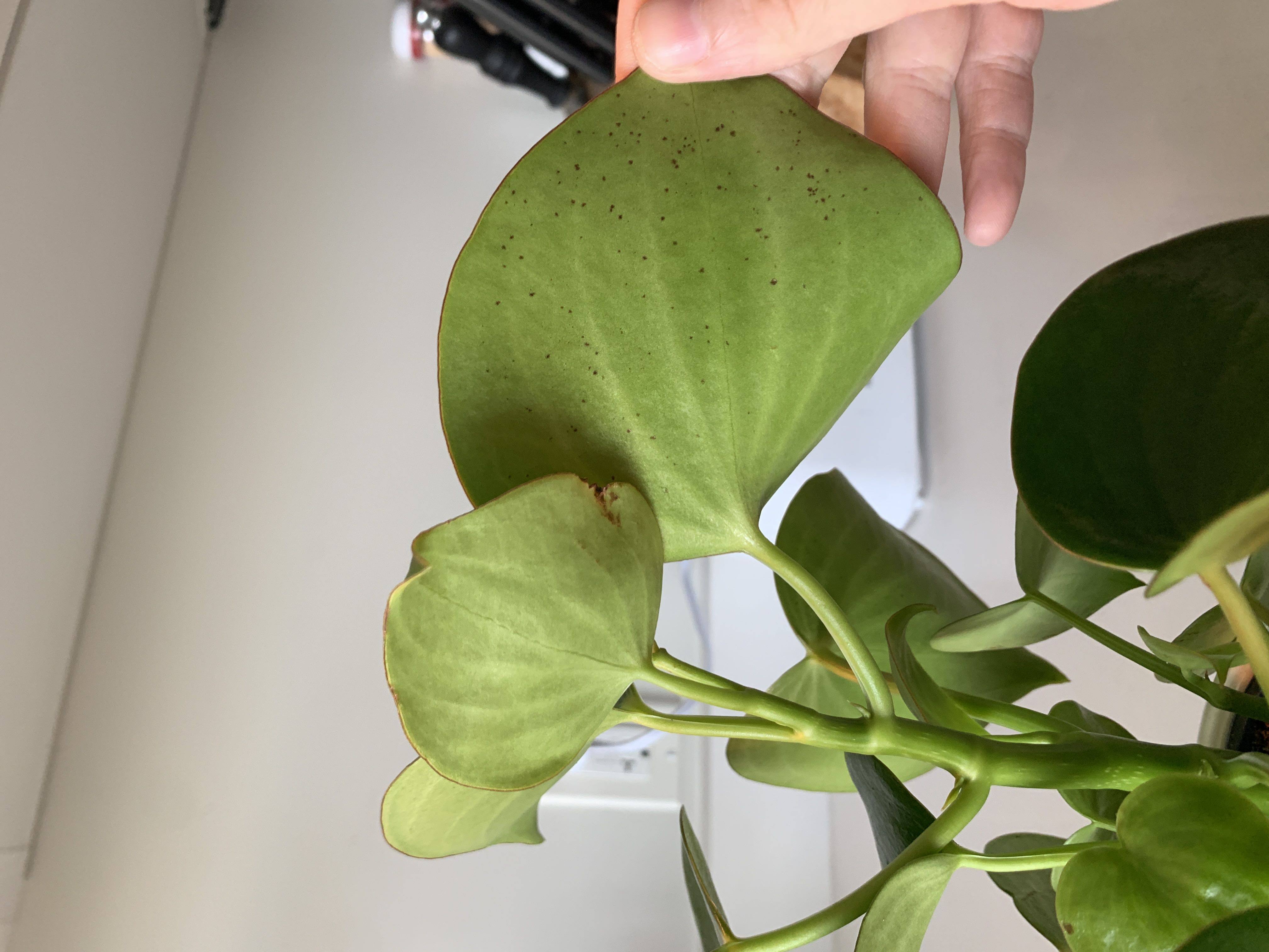 little spots on underside of leaf My plant looks otherwise healthy but I noticed these spots peppering the back of this leaf and a bit on the one next to it. Anyone know what it is?
