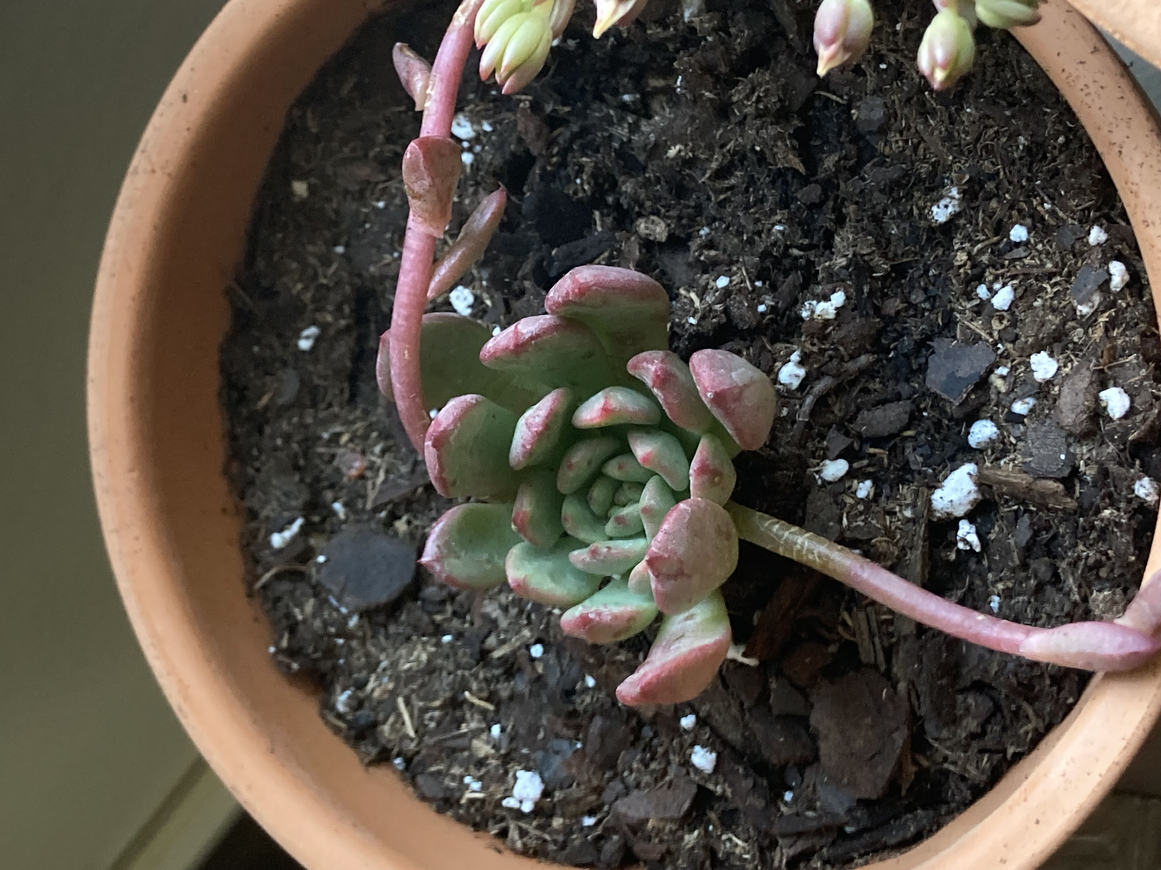 Got this beautiful little #succulent today and the flowers are very sad. Is there a way I can fix it? I plan on just setting it in direct sunlight daily #PinkRuby