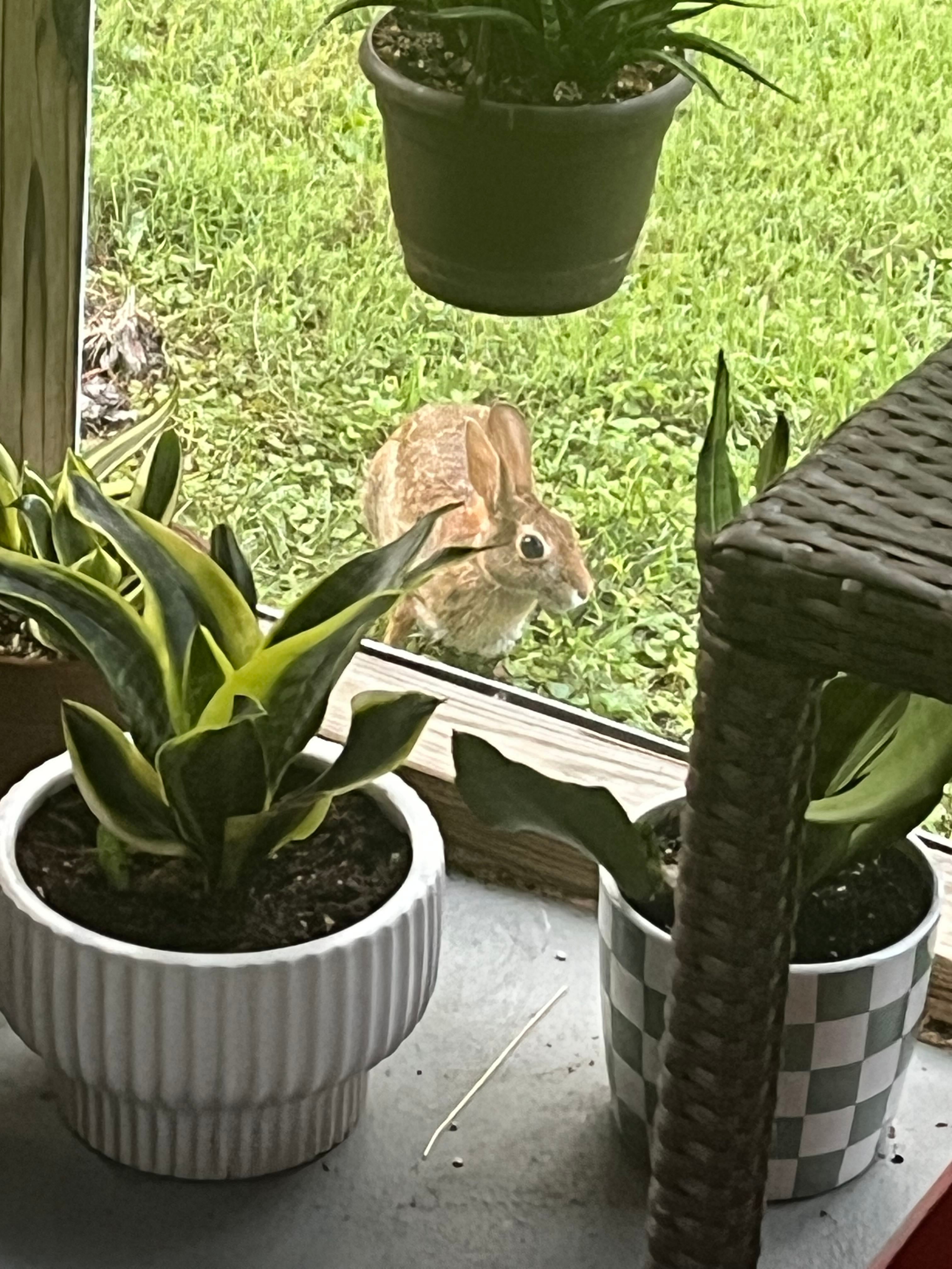 Happy Saturday, hope everyone is having a good evening. I watered some plants this heat is really stressing my outdoor plants, and even some of my succulents. Wanted to share a couple pics from yesterday. 1. A cute bunny eating some clover outside of the screened in porch. I got to watch him while I watered my plants. 2. Sedum ‘Gold Dust’ has some new growth (babies) 3. Anacampseros also has some new growth (baby plants) growing from the base. 4. Sempervivum has gotten much bigger since putting it in the ground. 5. My new plant stand on my front porch, I can’t remember if I posted it already or not, so here it is again. lol 🤣 #HappyPlants #NewGrowth #SucculentSquad #SucculentLove #Succulents #Succulent #GrowingSuccs #OutdoorGrowing #Anacampseros #Sempervivum #Sedum #PlantAddict #PlantLove #OutsidePlants