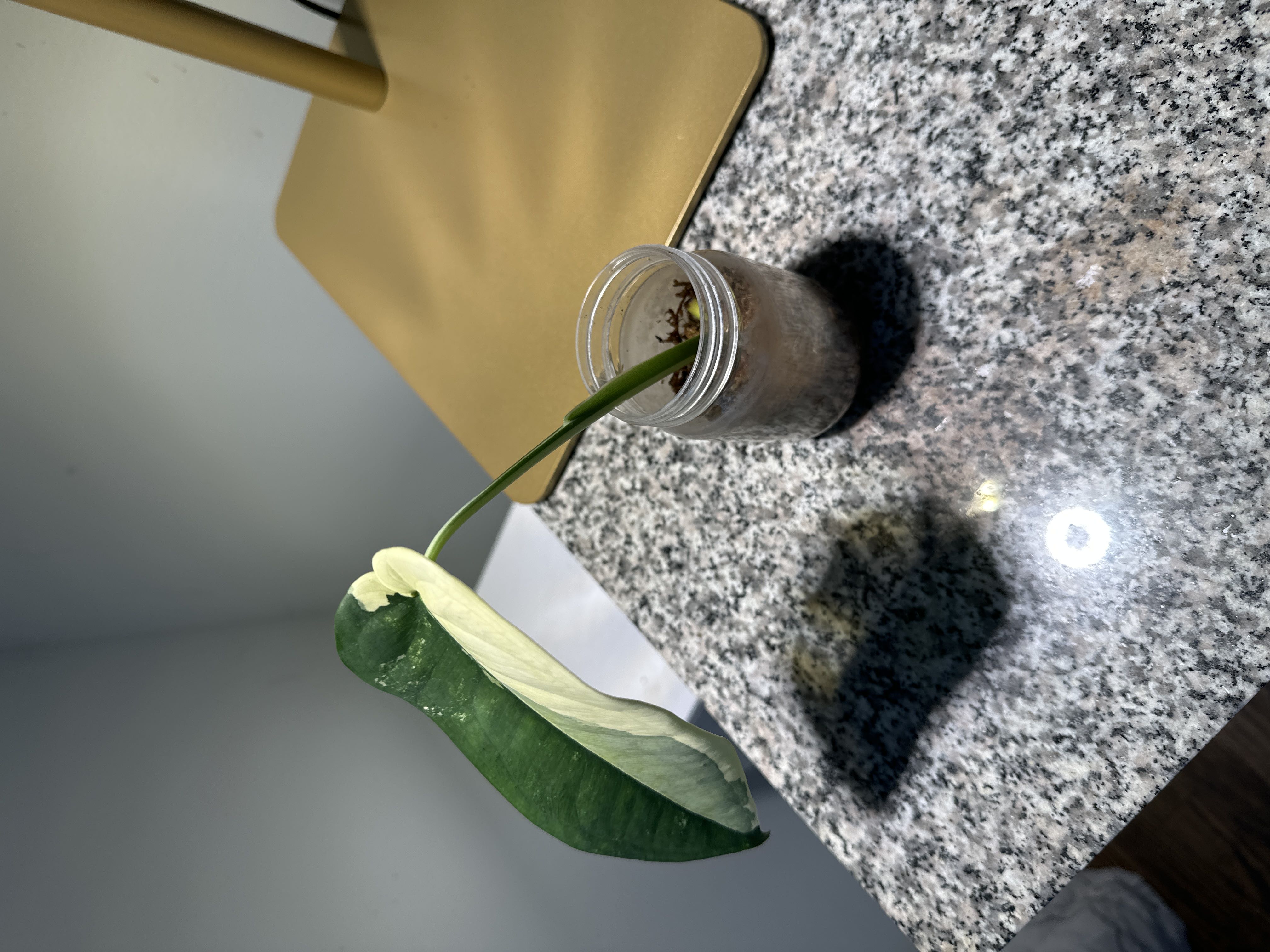 New propagation care? Bought this little guy last week. ChatGPT advises leaving it in this plastic jar for a few weeks. There was water in the bottom so I poked a hole and drained it but it’s still moist in there. I love it so much and just want to make sure I care for it correctly. My light meter has gone missing but it’s in pretty bright indirect light. Appreciate any tips! #PropagationStation