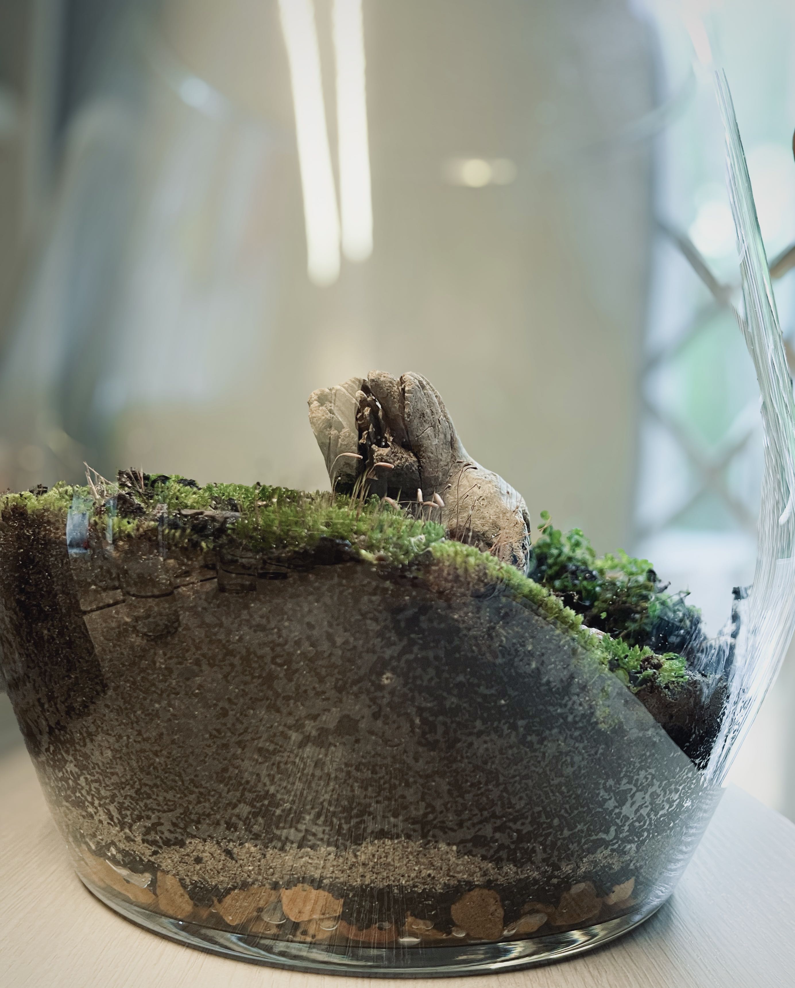 A little green breath held in glass. Not perfect, but perfectly mine. First terrarium—first step toward a magical world 🧚🏻 #BottledBiome #TerrariumDiaries #GreenHealing #Terrarium #NewGrowth #PlantsMakePeopleHappy