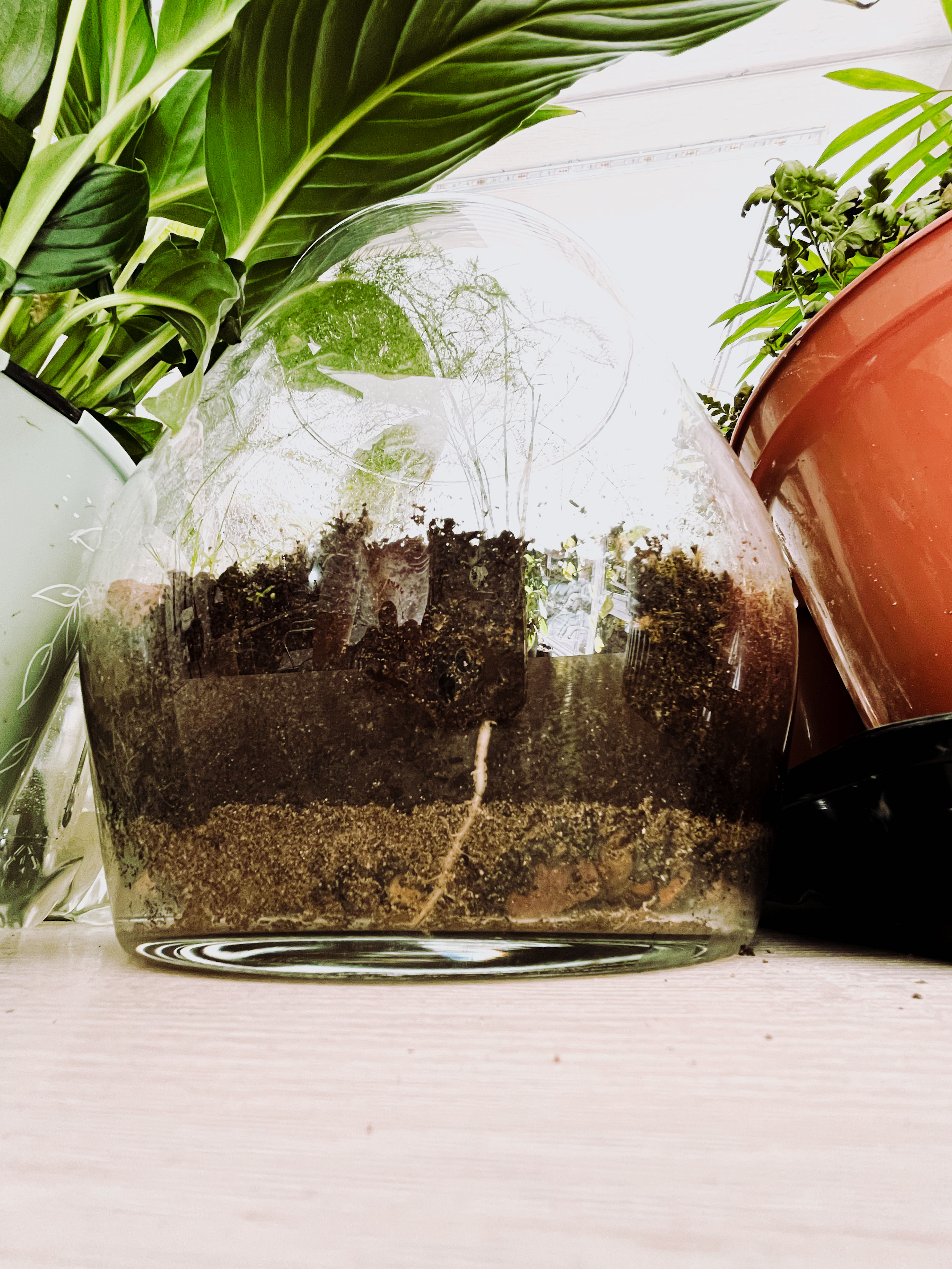 Someone is getting attached to the terrarium; It decided to anchor itself 😉 #Terrarium #Terrariumtribe #HappyPlants #PlantsMakePeopleHappy #PlantAddict #NewGrowth #PlantLove