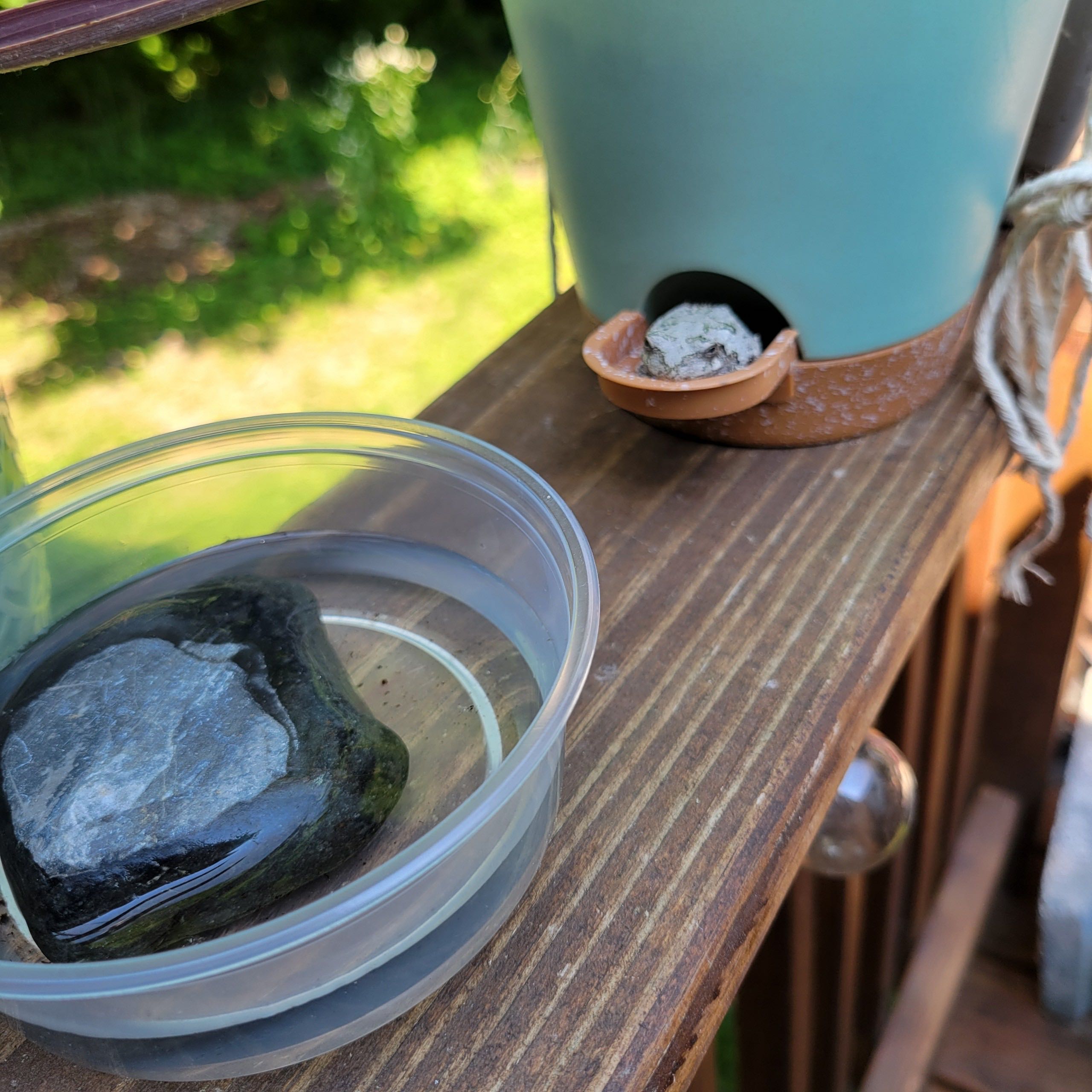 Status update: #BennyTheTreeFrog 🐸 He is back and perfectly fine! No injuries, and back to sunning himself on his porch! So happy his tumble didn’t scare him away permanently 🤗 I just love the little guy so much. Here he is earlier today while I was at work. He was hanging out with my mom and admiring his new pool we made him! And you’ll notice that I tied his pot to the deck railing in addition to putting a heavy rock inside, so there’s no way he will have another fall! 💚 In plant news: my #BlackEyedSusan are all beginning to bloom now! There definitely seems to be some powdery mildew on some of them, though, so I will be hitting it with some fungicide on Wednesday. Also, look at this absolutely tiny spider who made a web in my yellow hibiscus! She’s so small I could barely see her; grateful for zoom technology! 🤣🕷️🥹🐸💖🌻 #HappyPlants #PlantsMakePeopleHappy #OutdoorGrowing #OutsidePlants #GardenWildlife #BennyTheTreeFrog #babevila #PlantTherapy #PlantsSavedMyMentalHealth