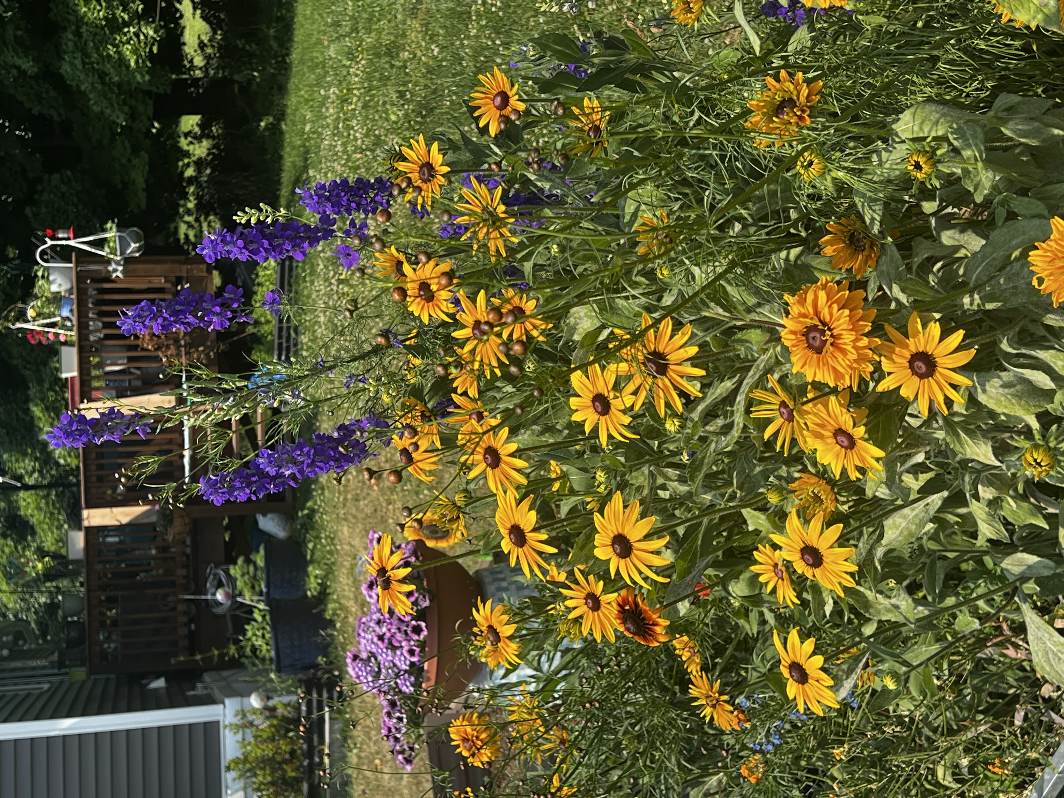 Now, for my #NewGrowth Outdoor Edition: Black Eyed Susan for days and days; my white lilies were the last to bloom but are enormous (like, the size of dinner plates!); I have strawberries coming in; and 2 more pics of my wildflowers erupting. More in the comments! #HappyPlants #OutdoorGrowing #OutsidePlants #BlackEyedSusan #Larkspur #Strawberry #lilies #babevila